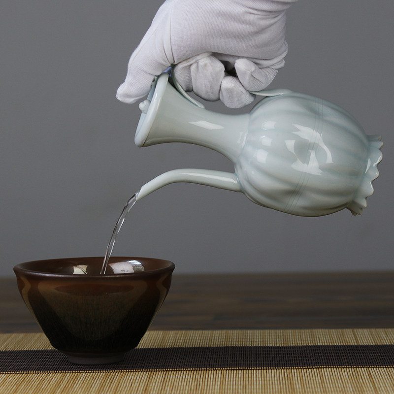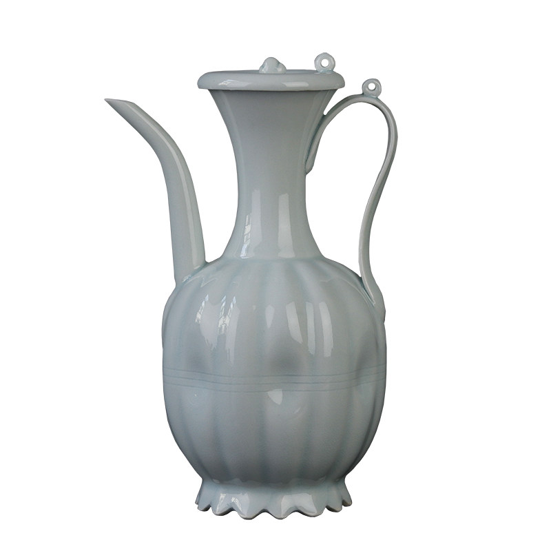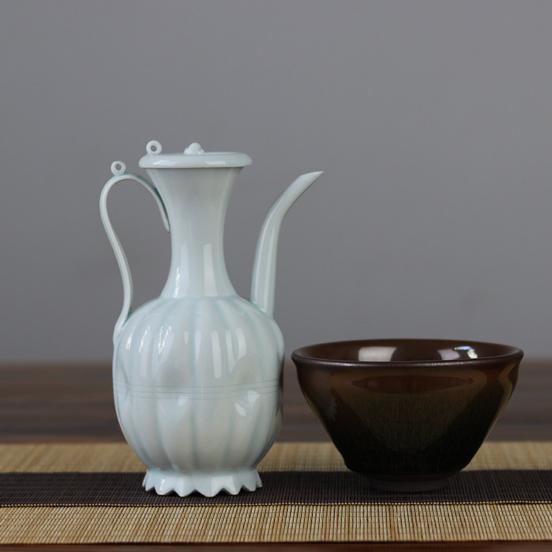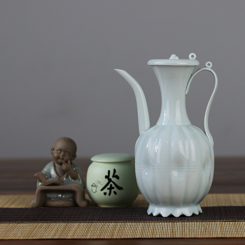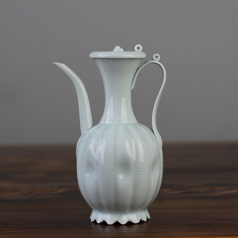 📚 复古宋影青釉小号瓜棱带盖手执壶宋代点茶茶百戏斗茶比赛培训茶壶
