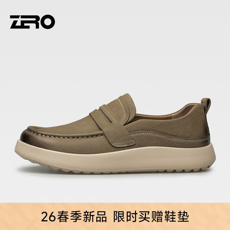 📚 ZRO零度男鞋一脚蹬休闲皮鞋2026春季新款轻盈舒适复古真皮鞋子男