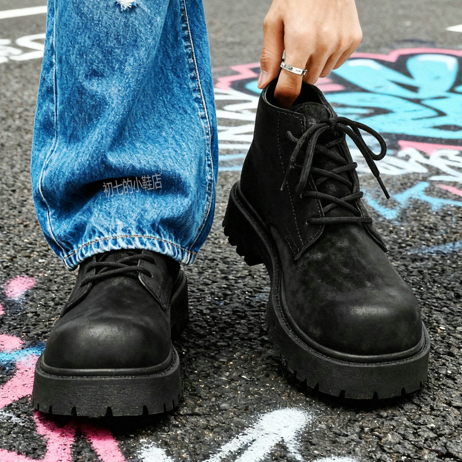 📚 马丁靴男鞋中帮复古短靴美式矮帮增高德比鞋棕色痞帅小众机车靴子