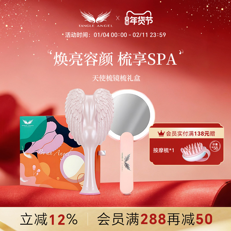 📚 TangleAngel天使王妃梳子便携led化妆镜礼盒套装女生生日礼物新品
