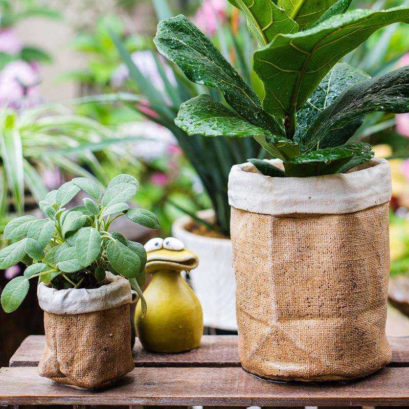 📚 水泥麻布口袋大小花盆花器花瓶干花种植室内盆栽创意北欧