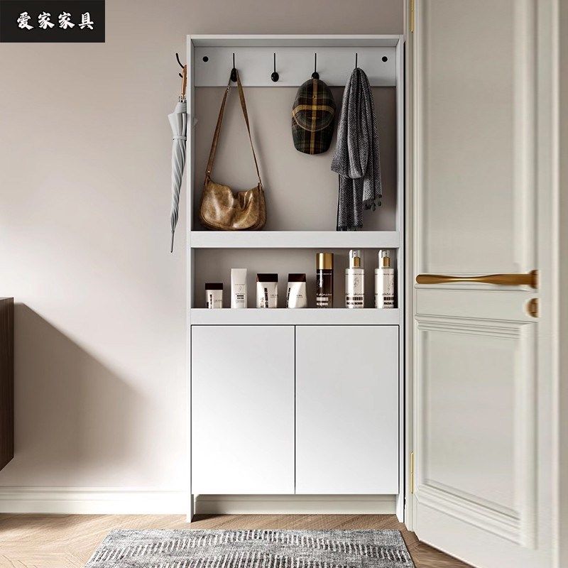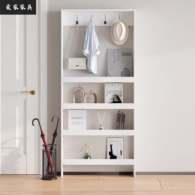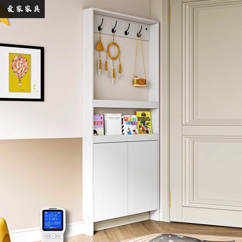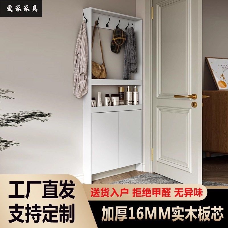 📚 北欧入户超薄收纳柜家用门后实木衣帽架玄关挂衣架靠墙极窄侧边柜