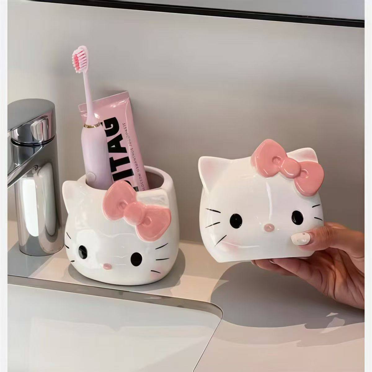 📚 KT猫化妆刷收纳筒摆件创意学生收纳盒桌上宿舍办公高颜值笔筒