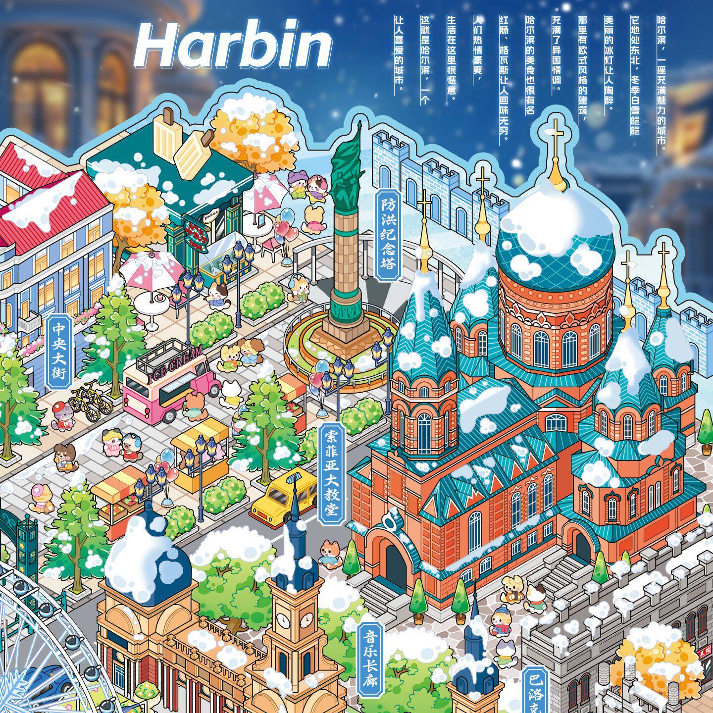 📚 语闲城市篇相逢哈尔滨造景贴纸 立体微缩场景手工diy趣味解压贴画