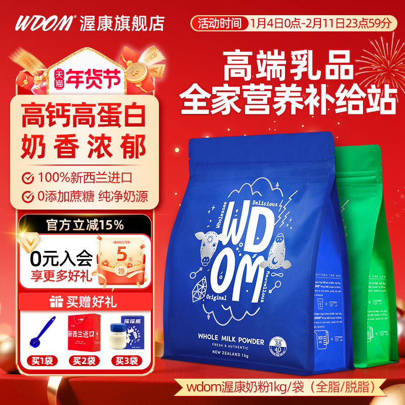 📚 新西兰WDOM渥康全脂脱脂奶粉速溶中老年青少年学生儿童营养牛奶粉