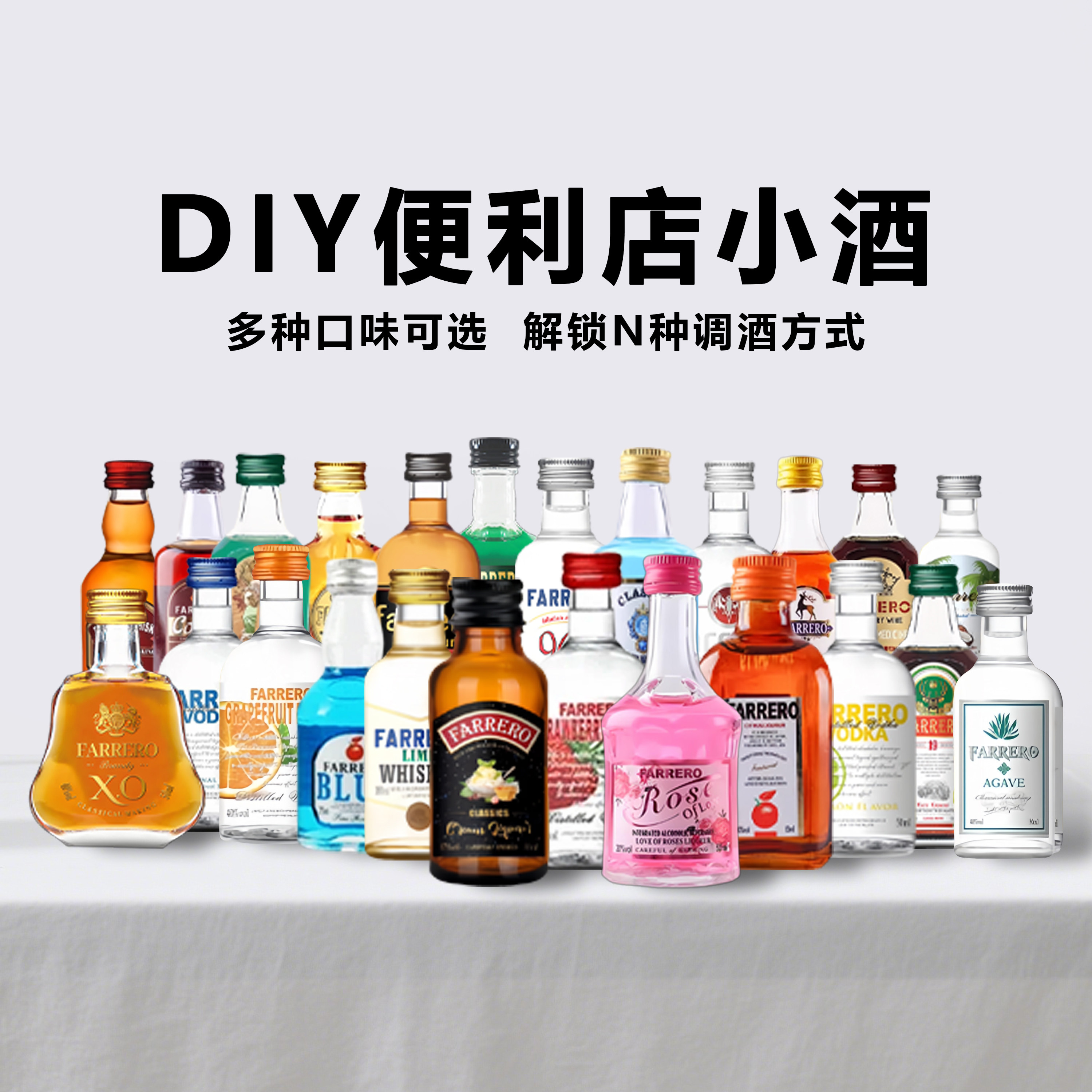 📚 小瓶便利店调酒洋酒小酒版威士忌朗姆金酒力娇酒白兰地50m玻璃瓶