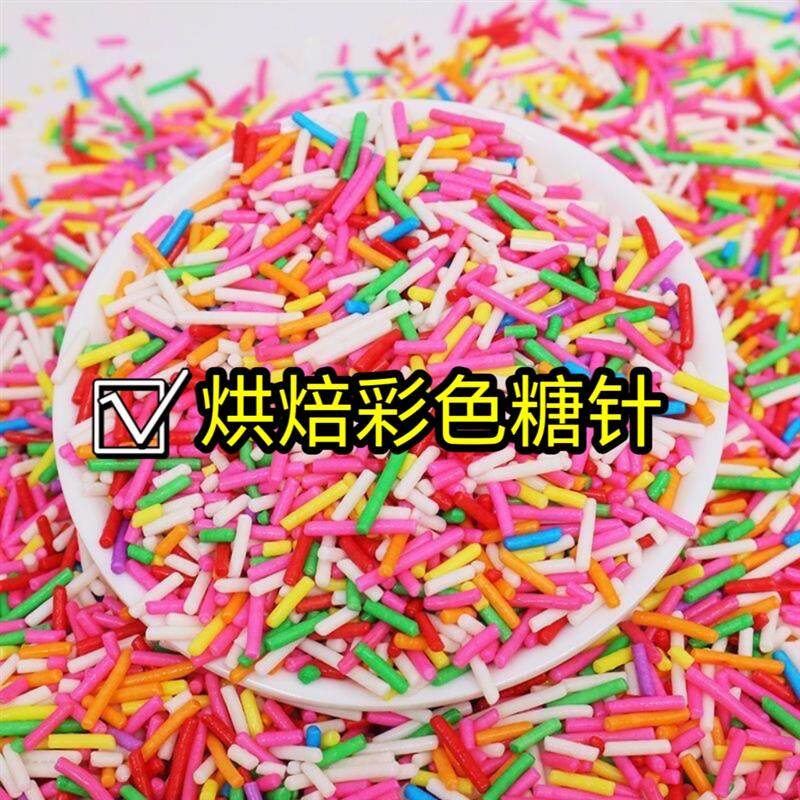 📚 彩糖针彩针糖珠彩糖针食用彩色朱古力彩针七彩糖针蛋糕冰淇淋烘焙