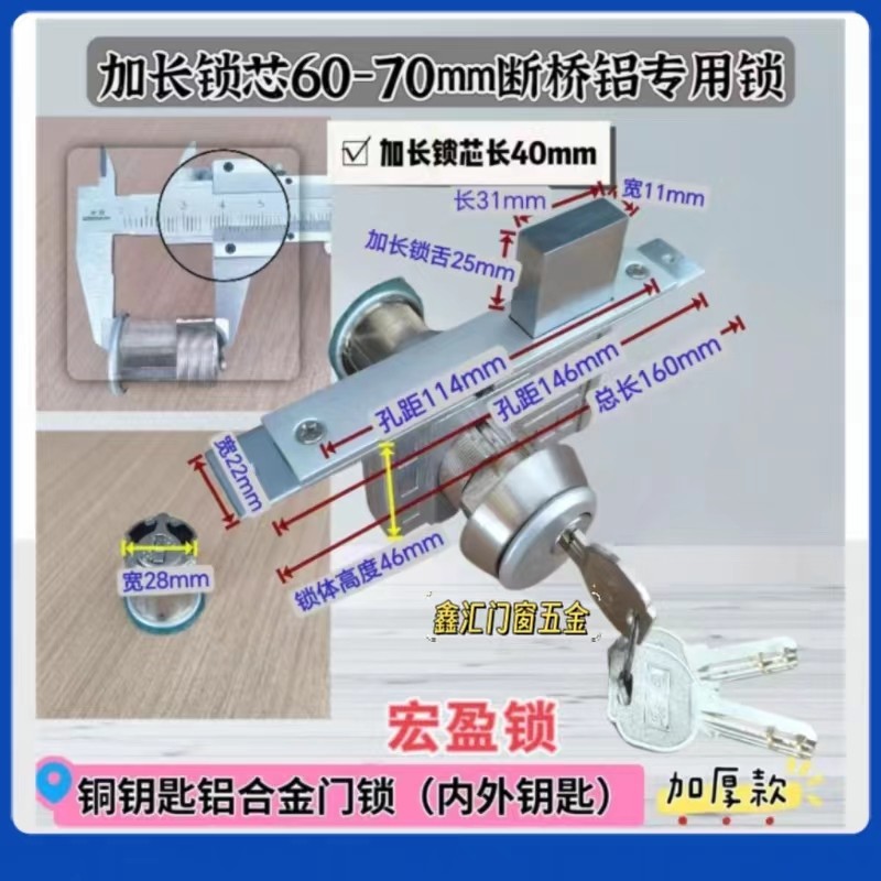 📚 加长锁芯宏盈加长锁舌断桥铝门锁铜钥匙加厚门缝大肯德基门商铺门