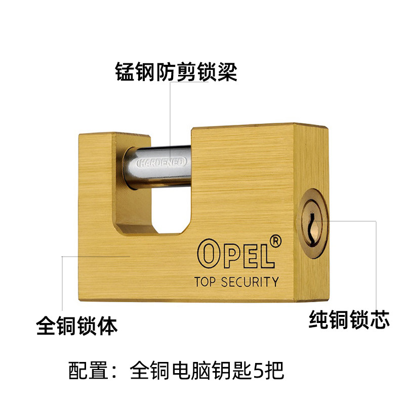 📚 纯铜矩形横开挂锁防剪锁防盗防水防锈挂锁铜锁门锁V仓库锁横梁锁