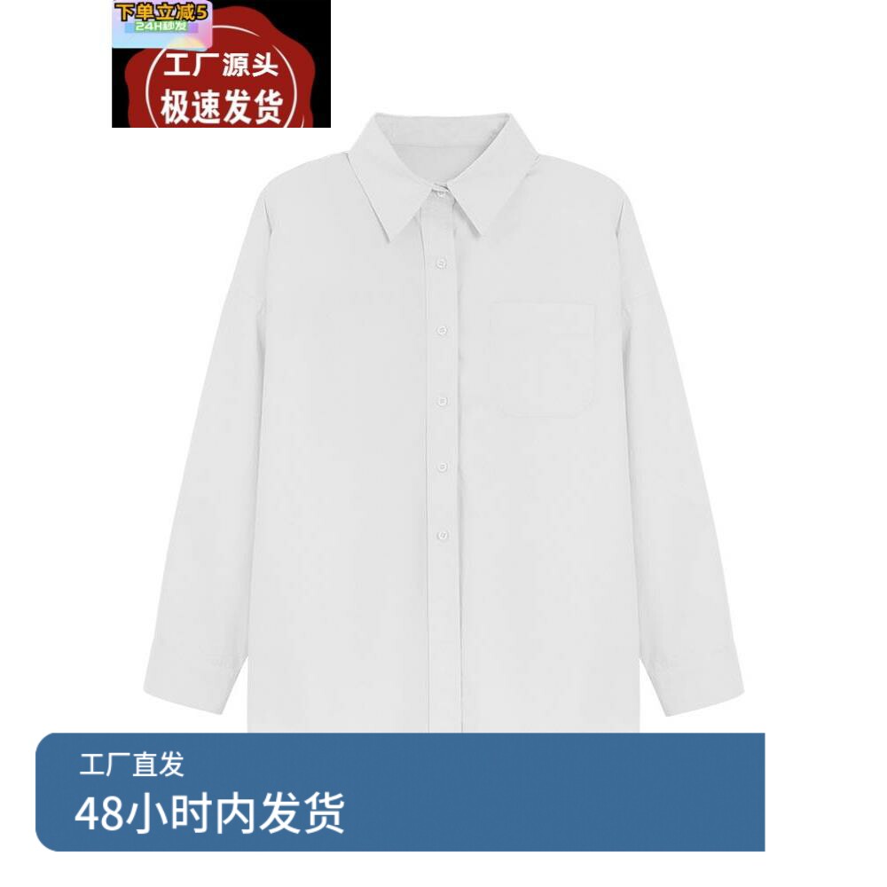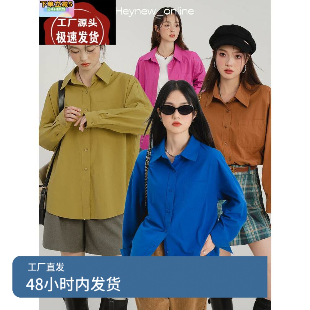 📚 LOVEHEYNEW蓝色衬衫女纯棉2024新款上衣春装粉色白色衬衣外套女