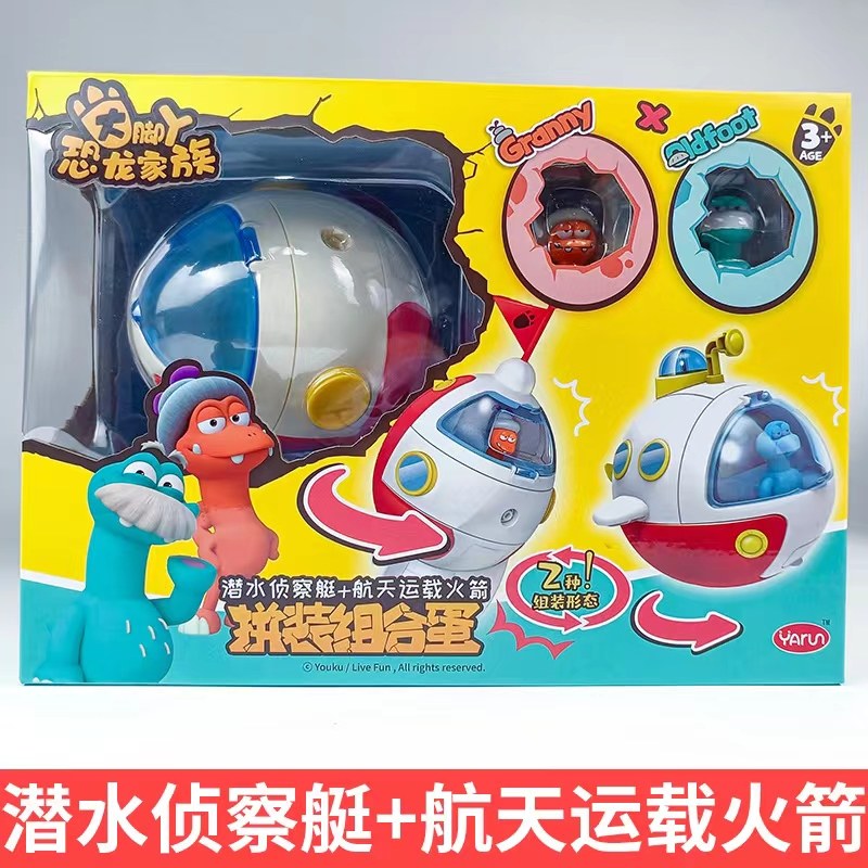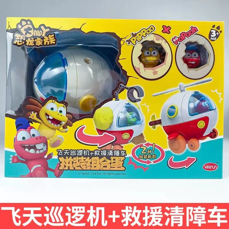 📚 雅润恐龙家族大脚丫拼装组合蛋飞天巡逻机救援清障车奇趣扭蛋玩具
