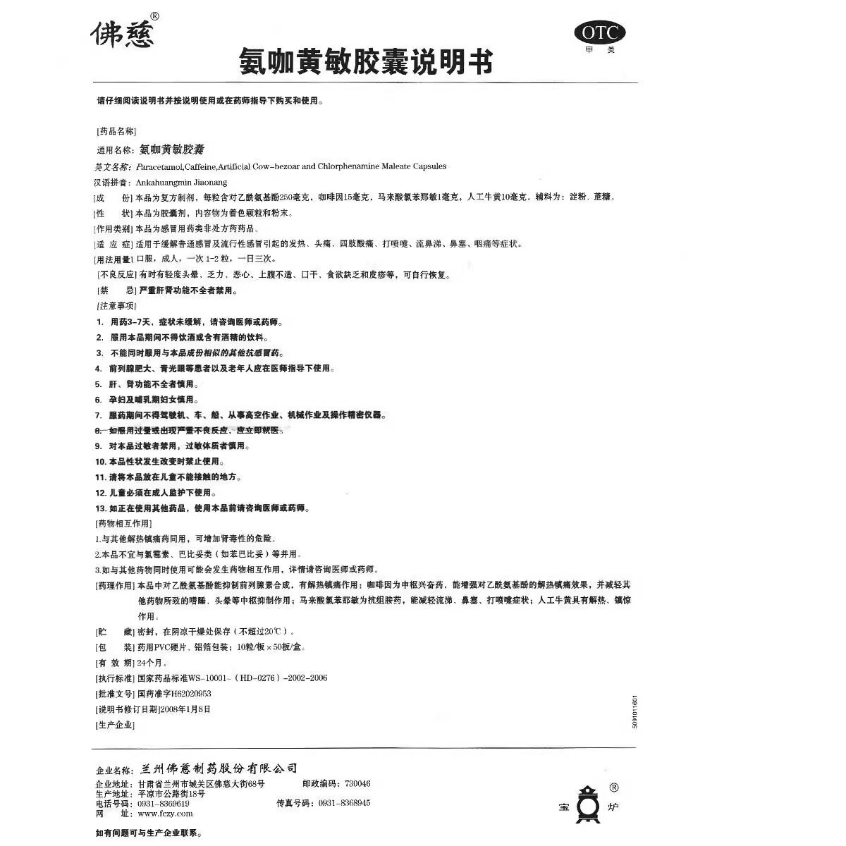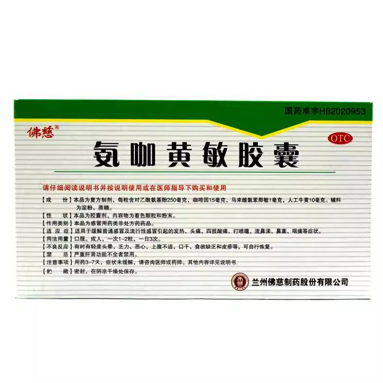 📚 50板】佛慈氨咖黄敏胶囊10粒/板感冒发热头痛流鼻涕咽痛咽痛鼻塞