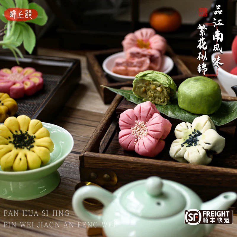 📚 苏州特产新中式糕点荷花桃花酥宋代苏式下午茶点心摆台鲜花饼摆盘