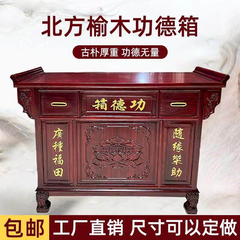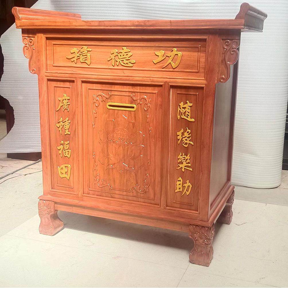 📚 功德箱榆木善款供桌家用语音带钥匙带锁定做寺庙道观福田佛柜保险