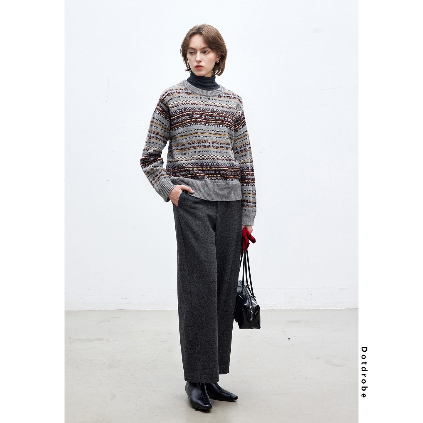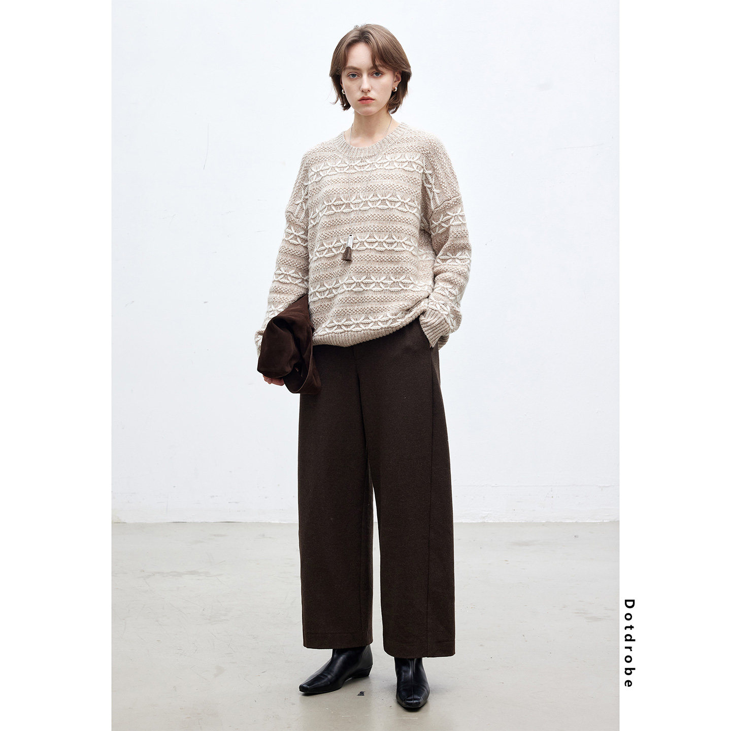 📚 Dotdrobe多着 连腰微弧香蕉型 显瘦羊毛混纺九分裤女可机洗两色入