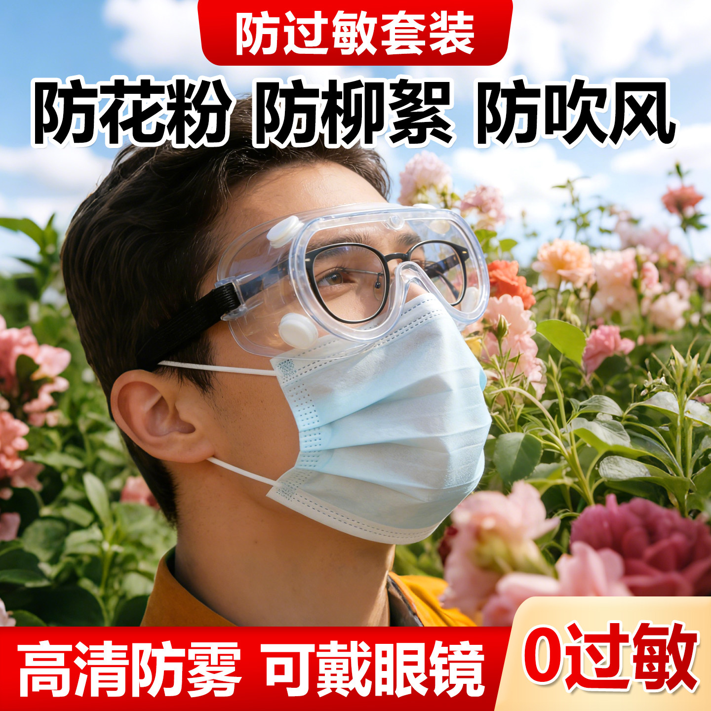 📚 防过敏护目镜防花粉眼镜防吹风眼罩可戴眼镜高清防雾近视防灰尘