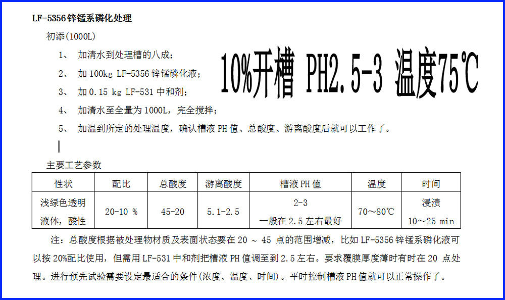 📚 厂家直销 钢铁件中温无渣锌锰系磷化液 膜呈灰黑色 LF-5356 促销