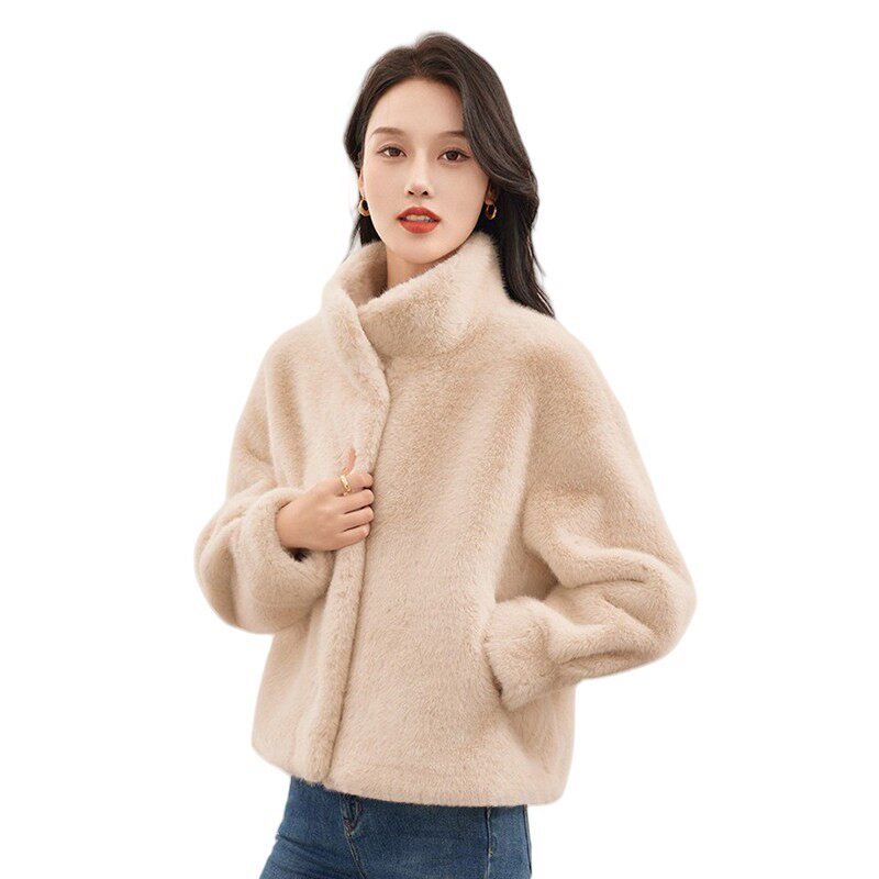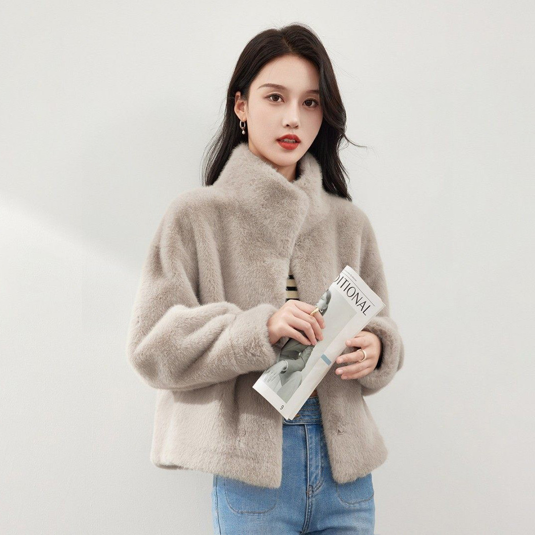 📚 仿貂绒环保皮草外套女2025秋冬新款貂绒大衣短款小个子加厚保暖