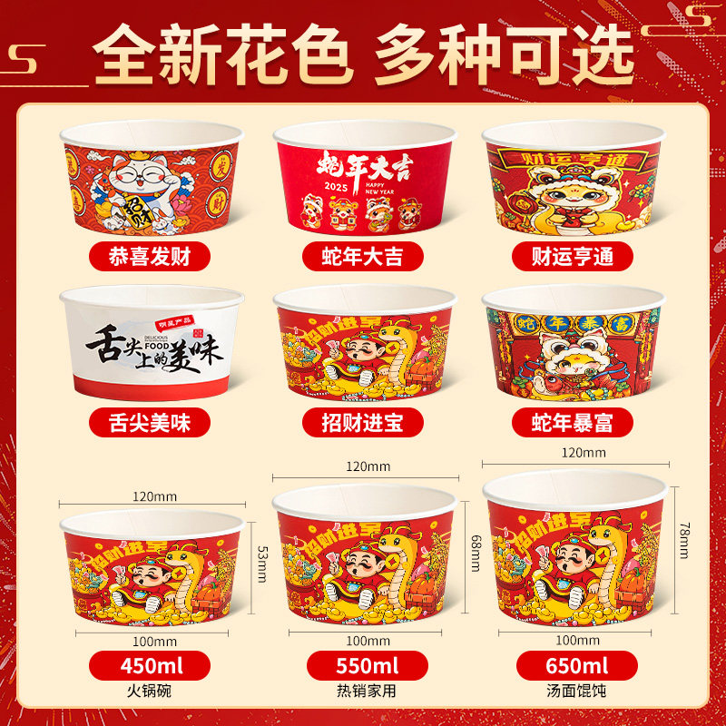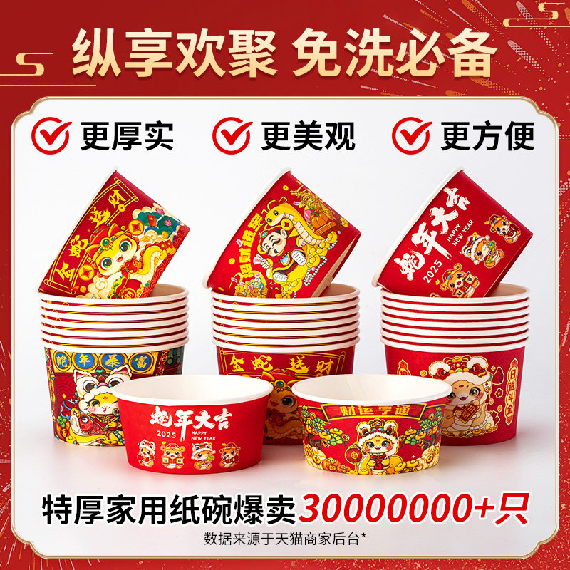 📚 2026新年纸碗食品级家用碗筷整箱批发马年餐具打包餐盒一次性饭碗