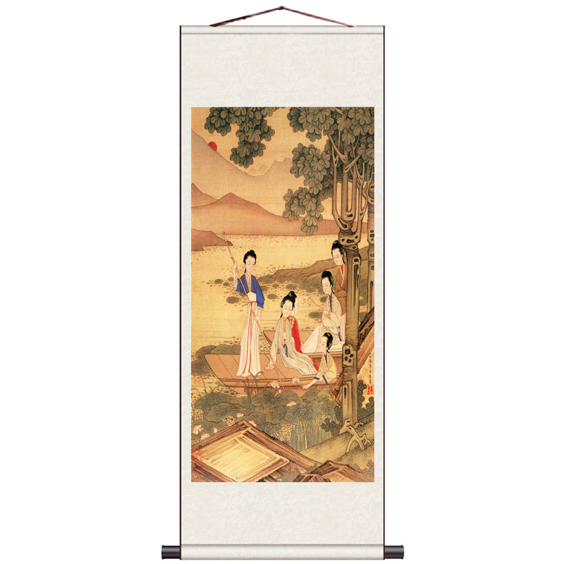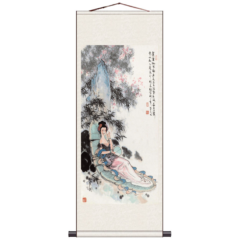 📚 抚琴仕女作画仕女杨贵妃王昭君条幅人物挂画美女卷轴画影楼装饰画