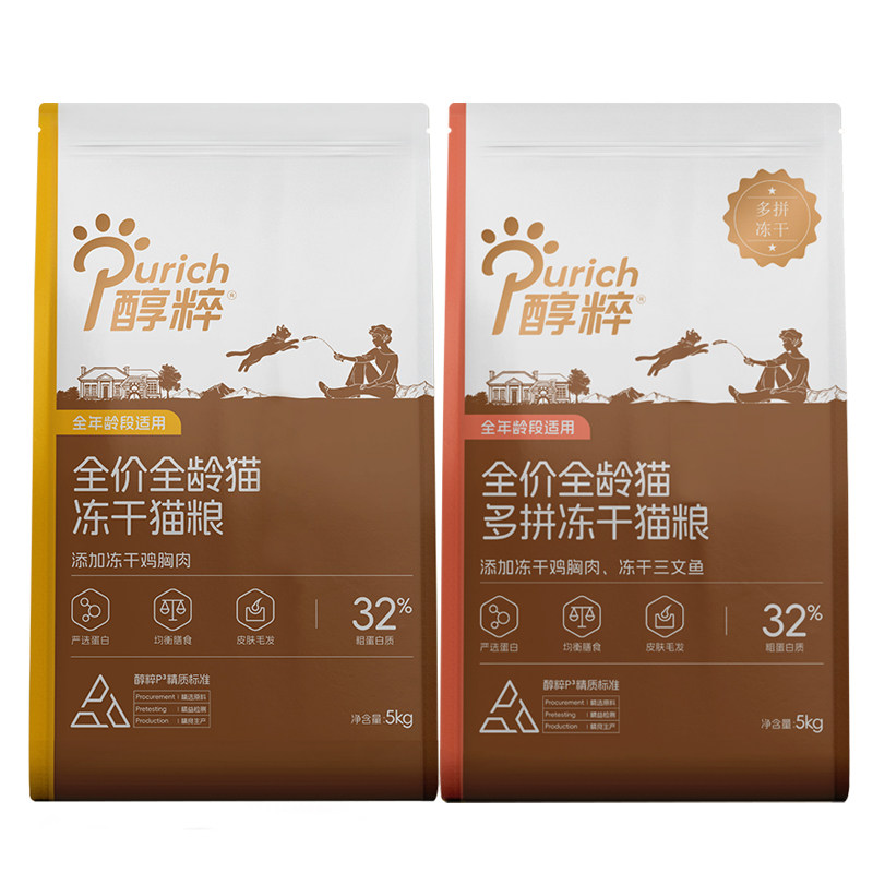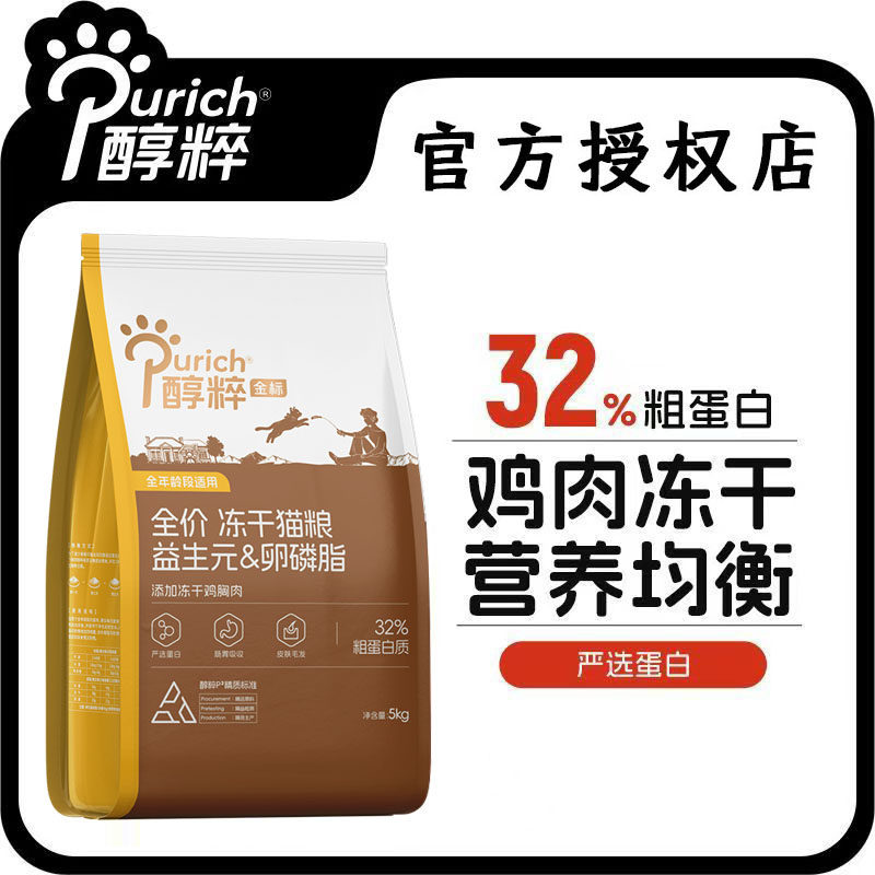 📚 醇粹金标猫粮5kg鸡肉冻干纯粹旗舰全价低敏鳕鱼三文鱼冻干成猫粮