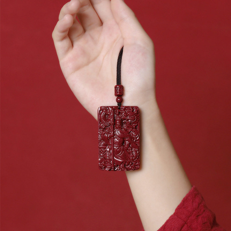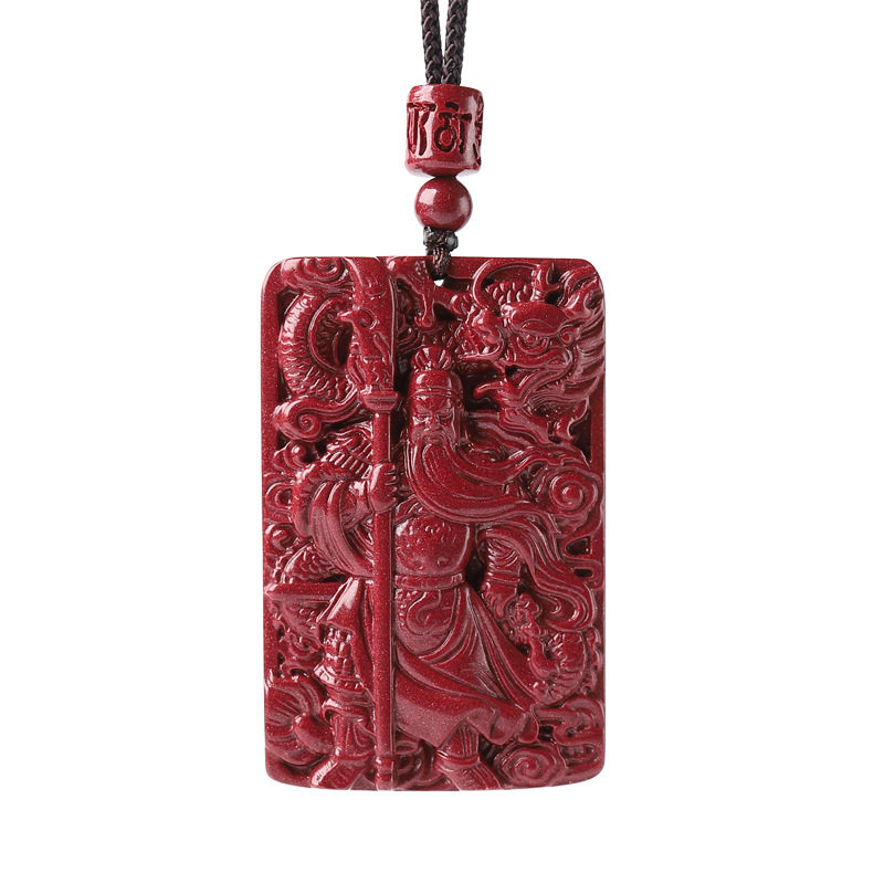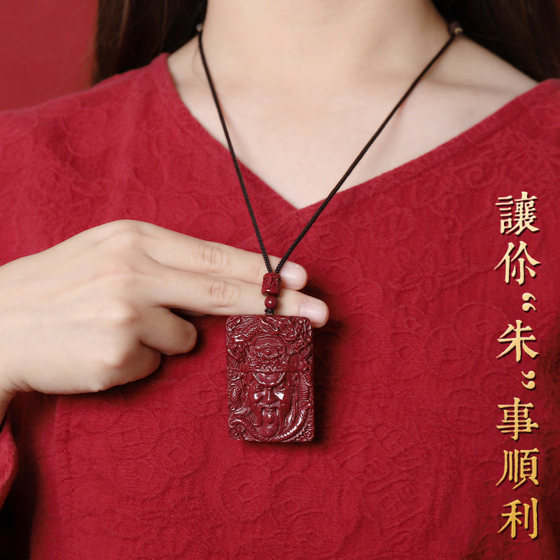 📚 天然满星光高含量朱砂关公吊坠男女紫金砂本命年项链无事牌挂件