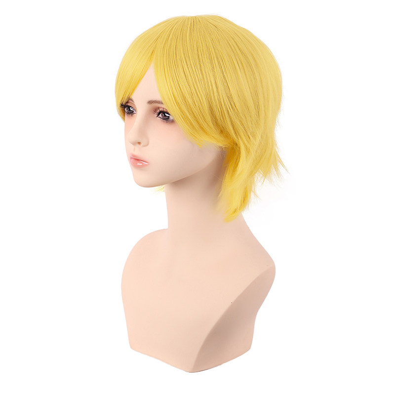 📚 潼漫 cos假发女短发30CM万用反翘男短发亮黄色金黄色动漫假毛头套