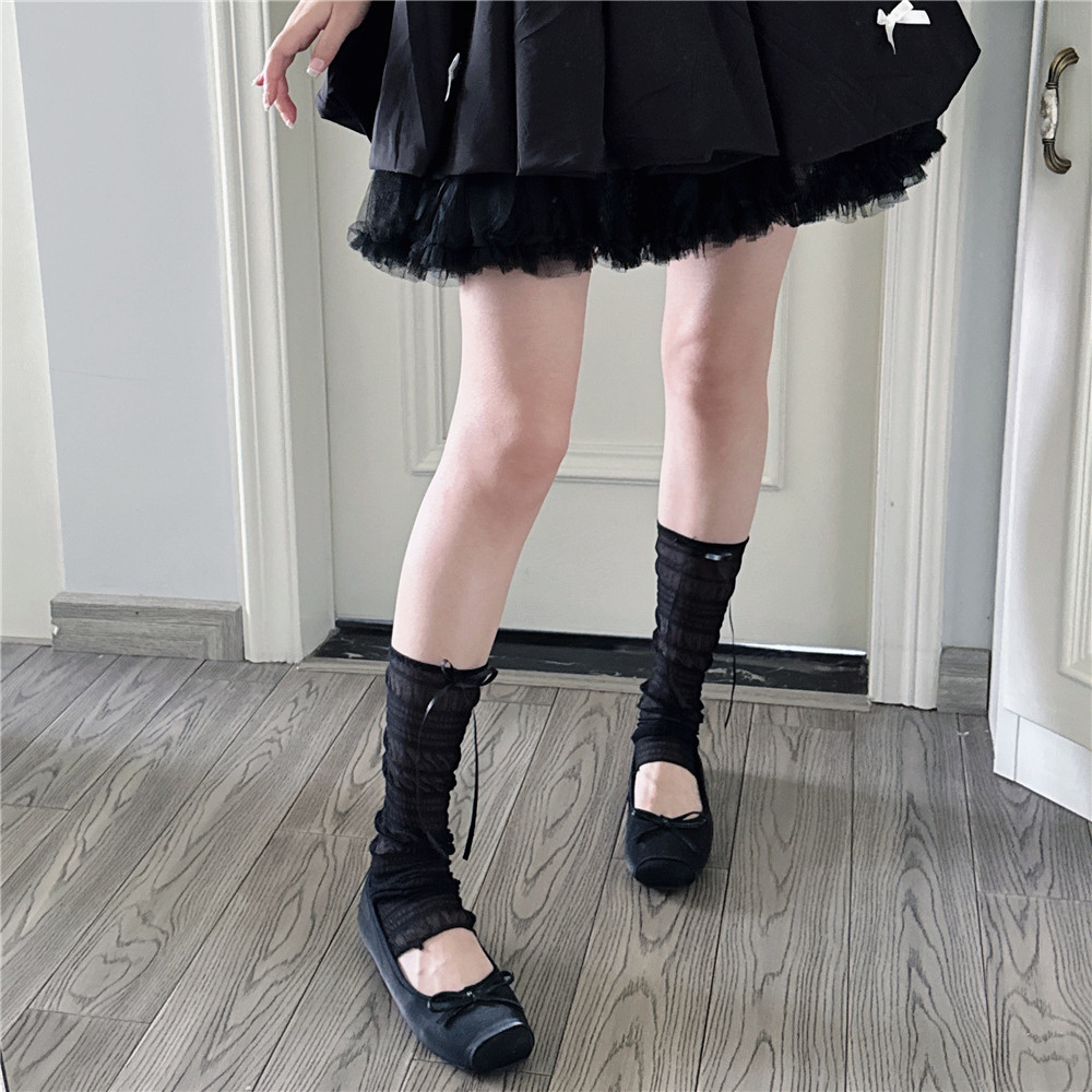 📚 AY To films 夏季超薄网纱蝴蝶结可爱腿套甜酷黑色泡泡纱堆堆袜套