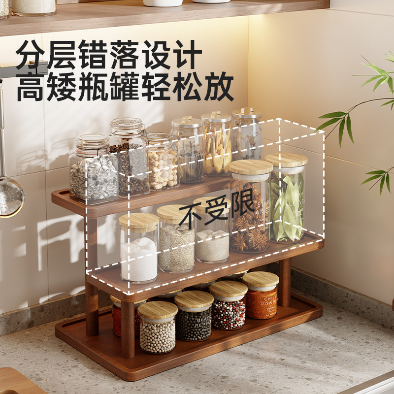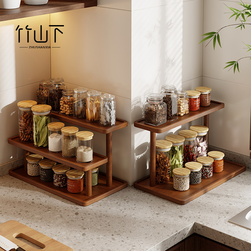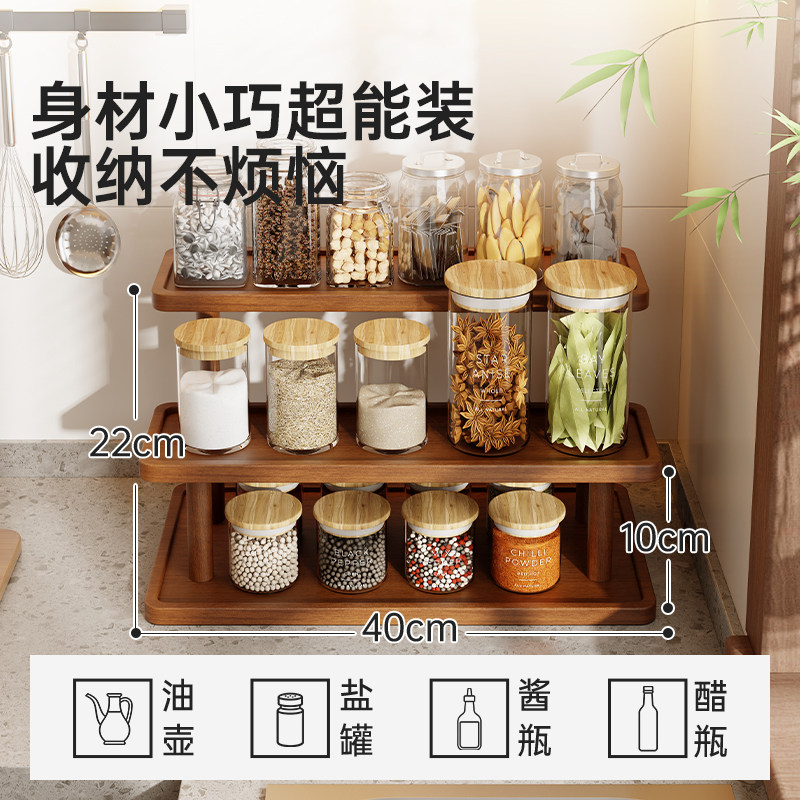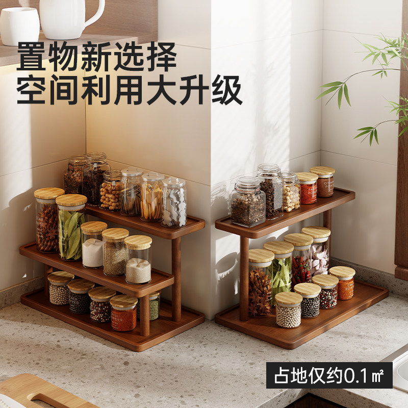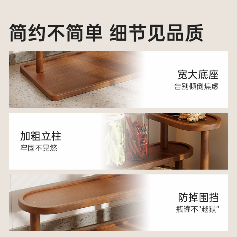 📚 实木厨房窄边置物架家用台面收纳调料品多层靠墙省空间灶台分层架