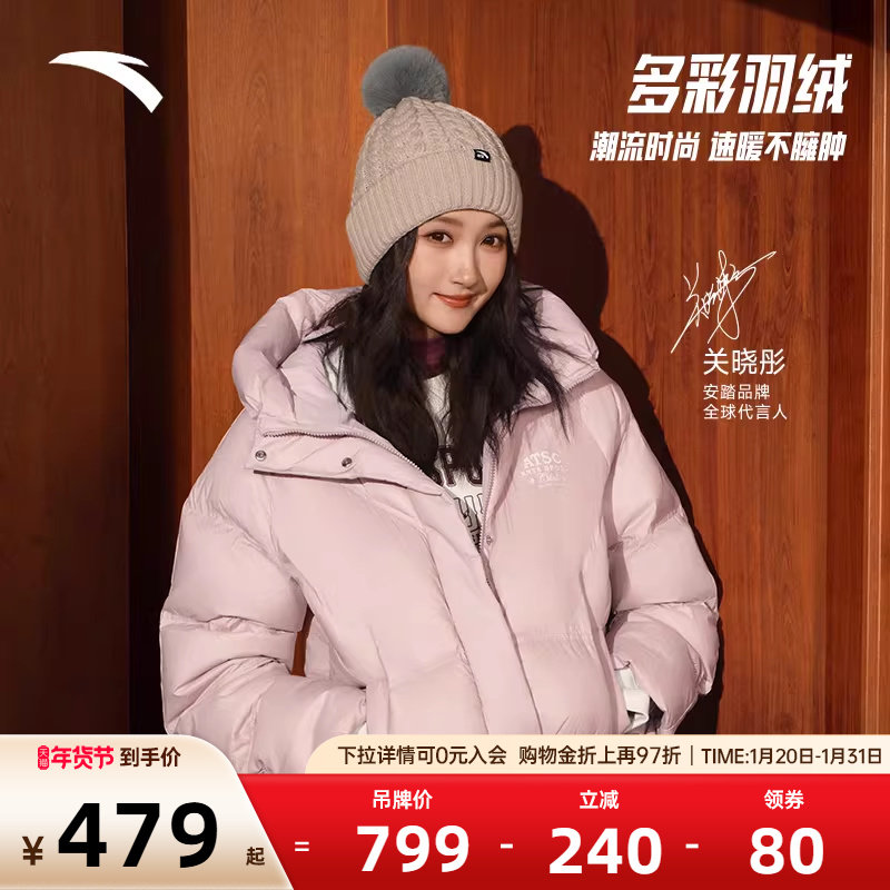 📚 【关晓彤同款】安踏多彩羽绒服女子保暖防泼水羽绒茄克162548903N