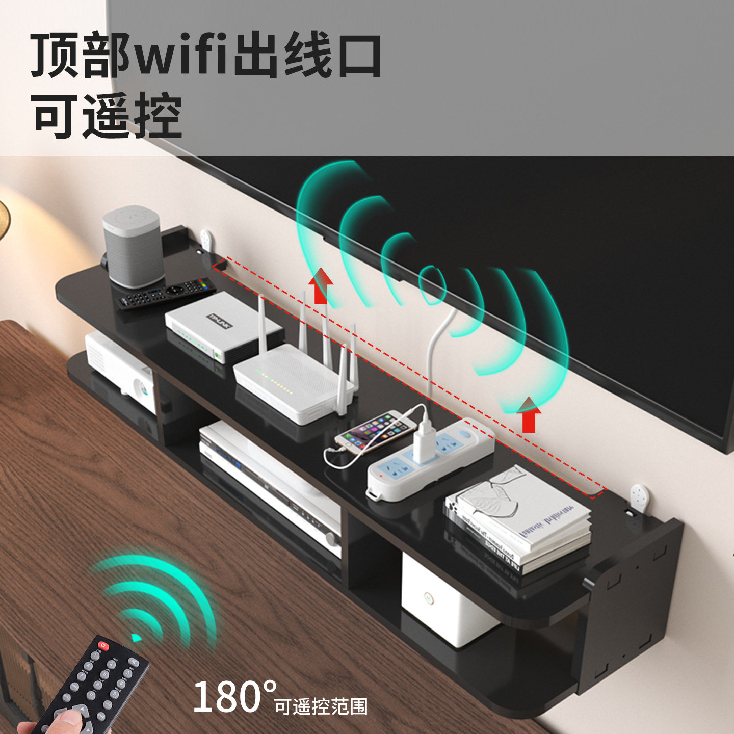 📚 壁挂式实木WiFi路由器收纳盒子墙上电视机顶盒置物架支架放置下面