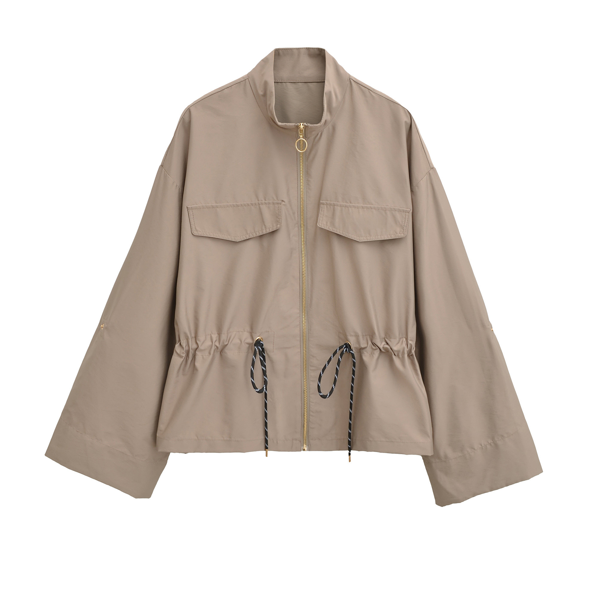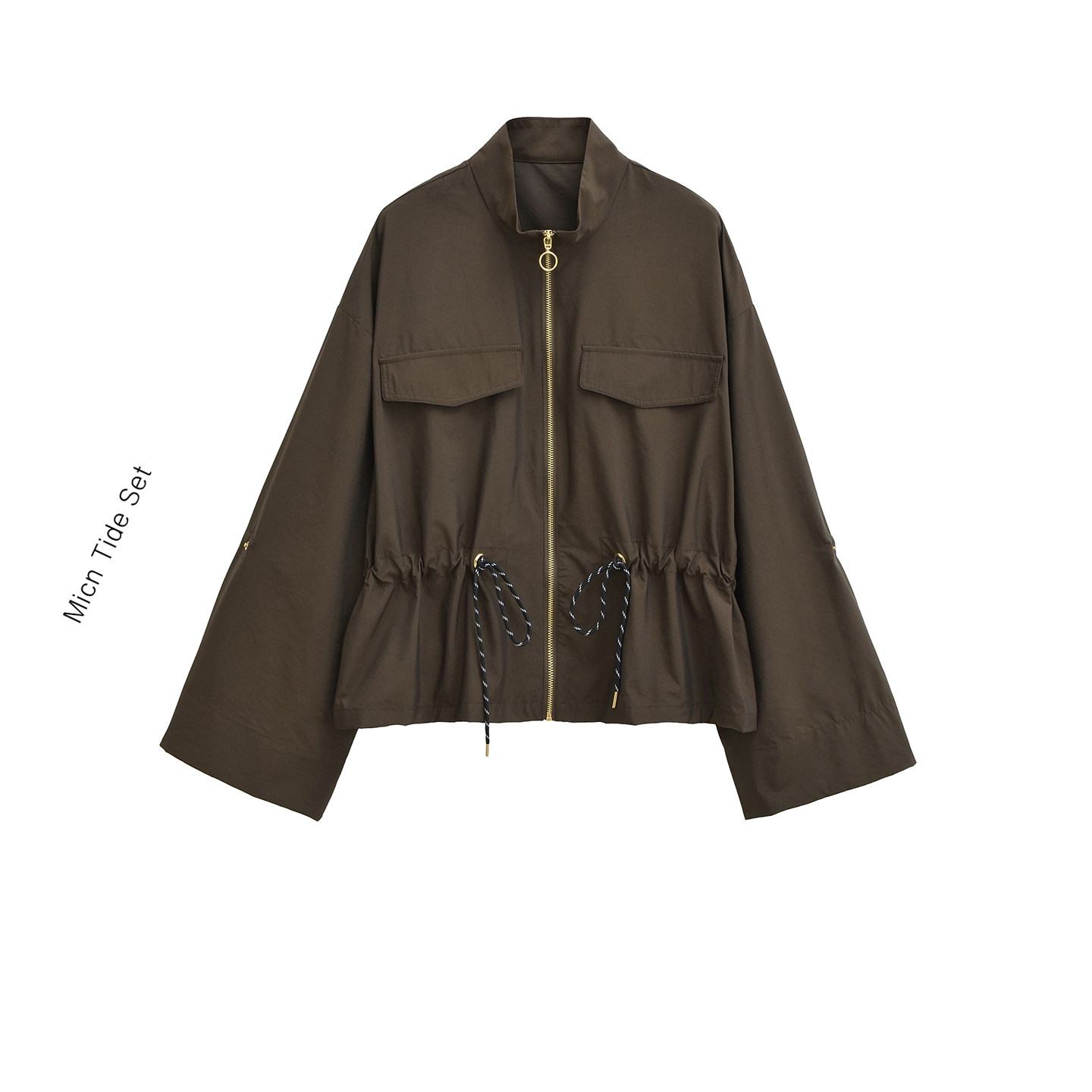 📚 MICN女装抽绳立领工装风衣外套秋季新品拉链游猎装款系带夹克上衣