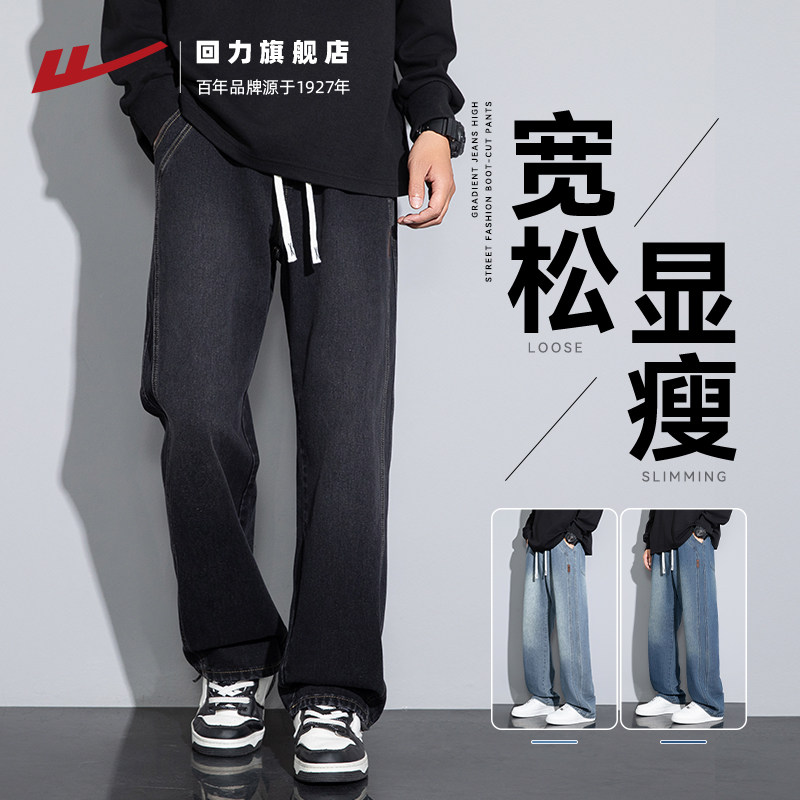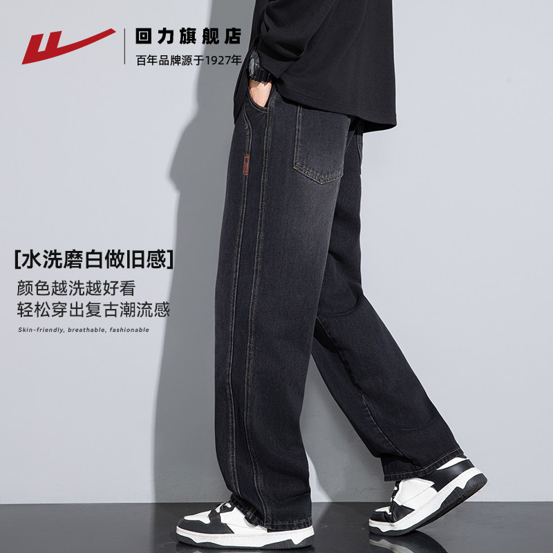 📚 回力牛仔裤男2025秋季新款宽松直筒休闲长裤美式复古渐变裤子男款