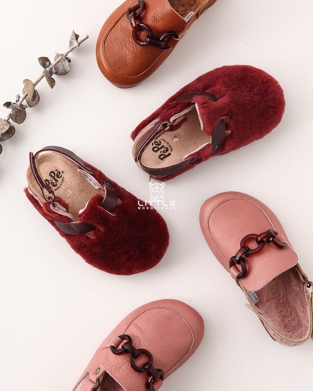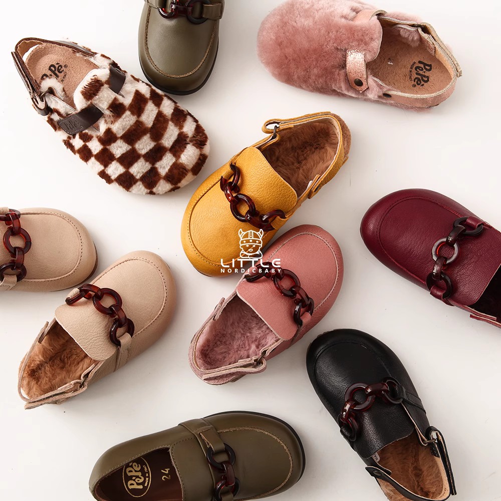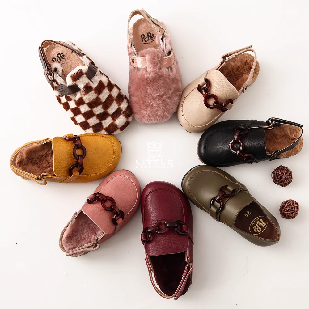 📚 6Z Little家现货pepe 意大利制儿童鞋秋冬牛皮加绒福乐鞋毛拖鞋