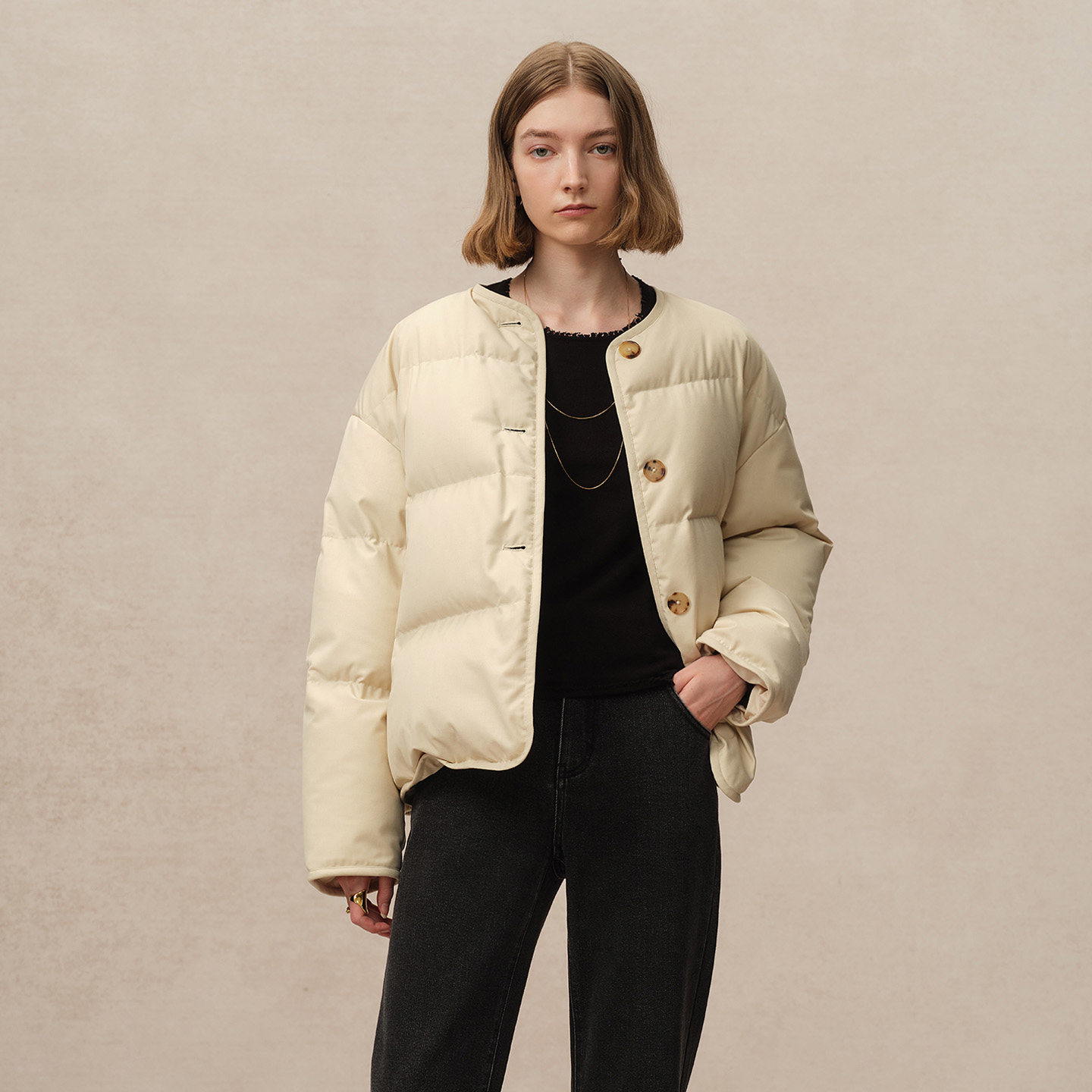 📚 Fabrique 宽松防泼水圆领短款女士羽绒服冬季新品加厚外套