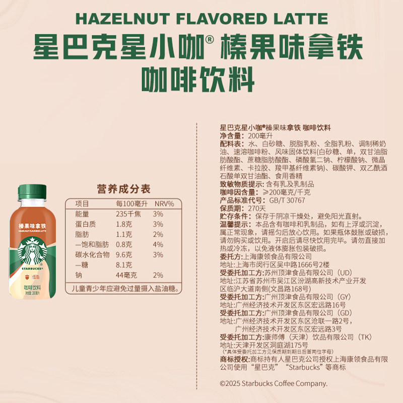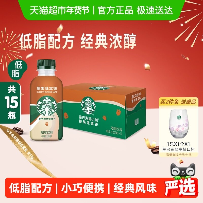 📚 Starbucks/星巴克星小咖榛果拿铁200ml*15瓶即饮咖啡饮料
