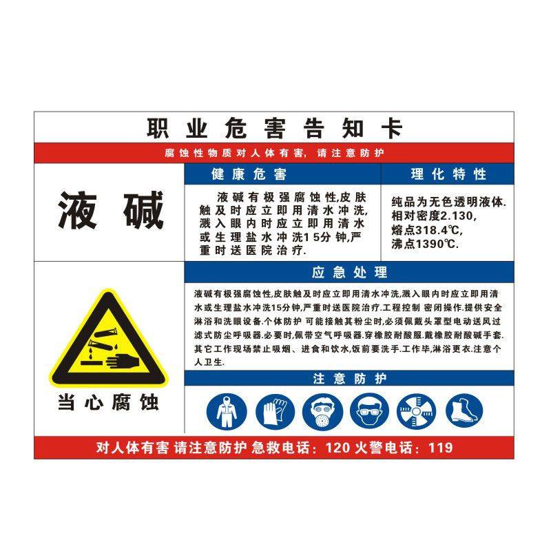📚 液碱职业病危害告知牌卡卫生当心腐蚀消防安全周知危险废物化学品工厂车间标识提示贴纸警示标志定制GFS05