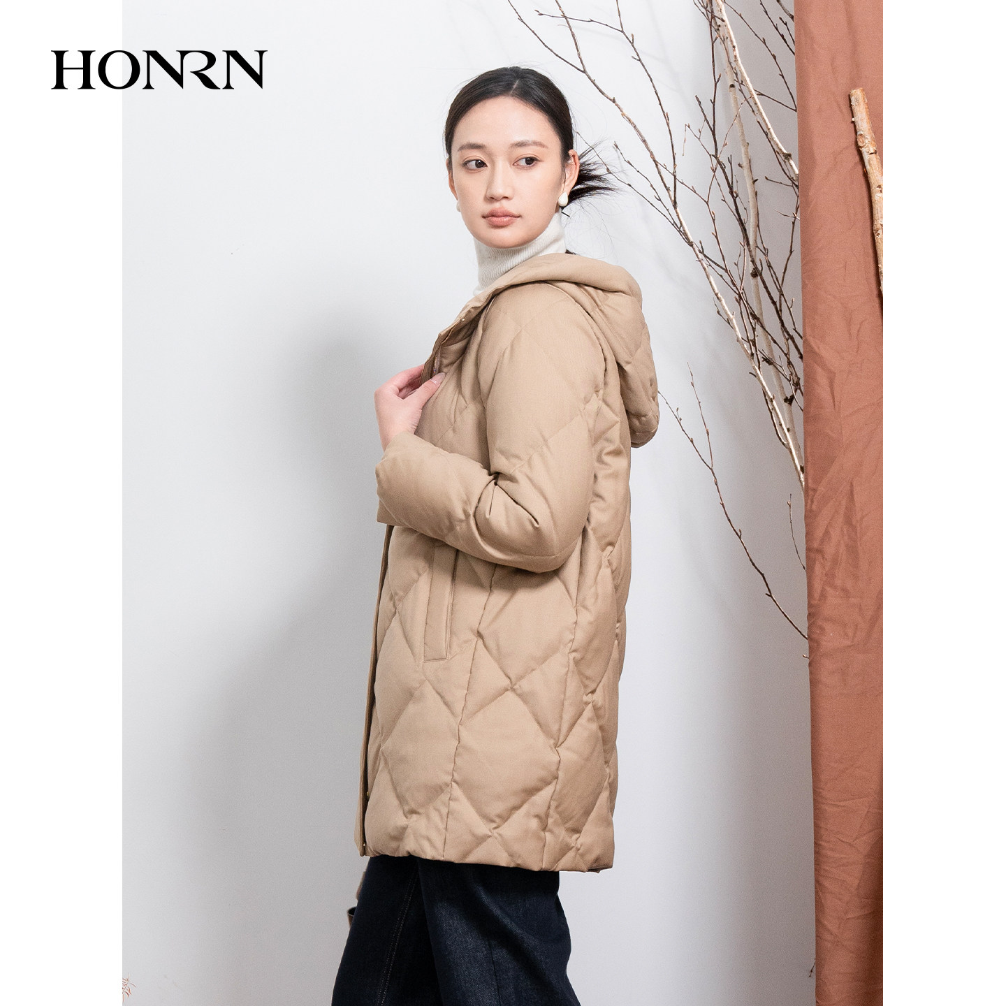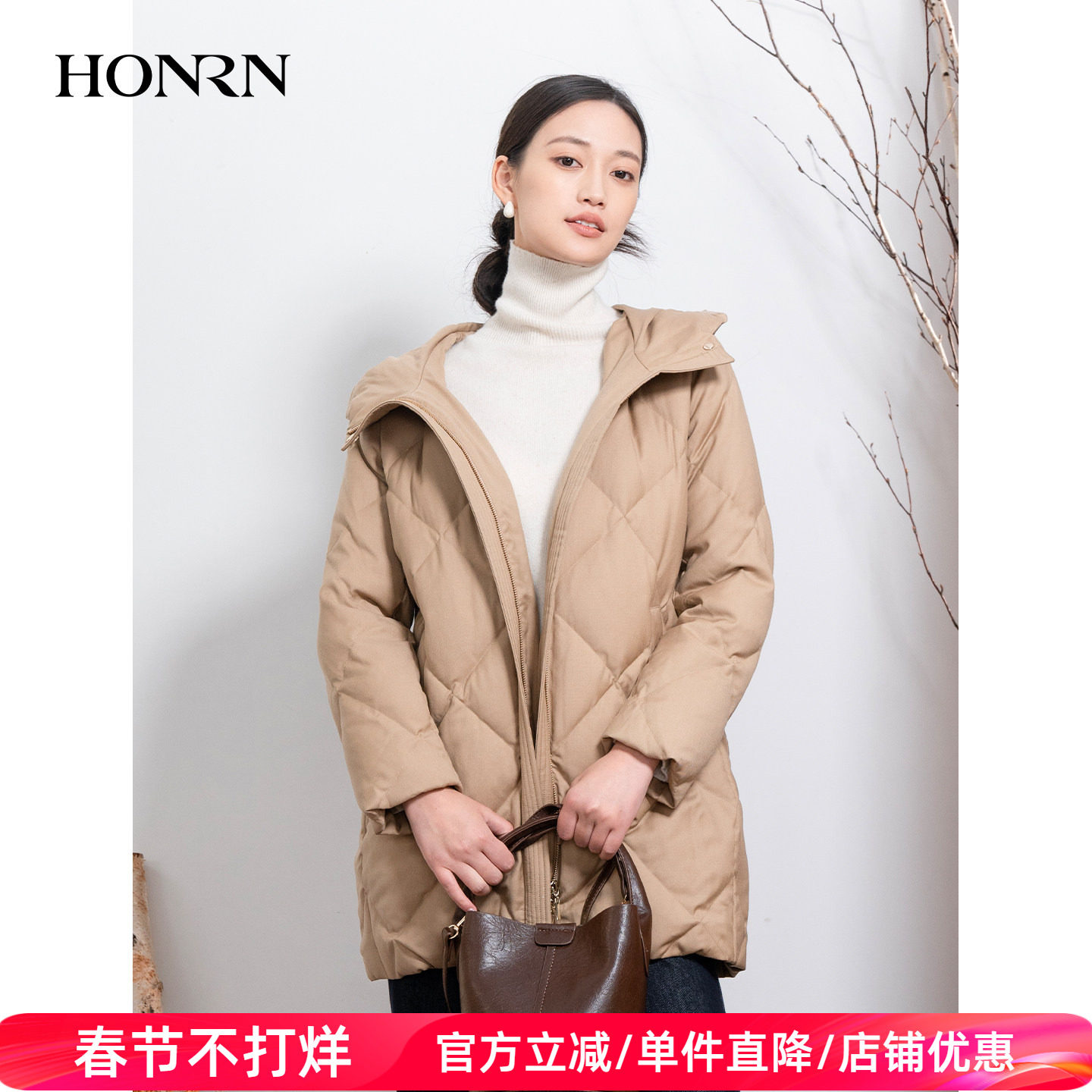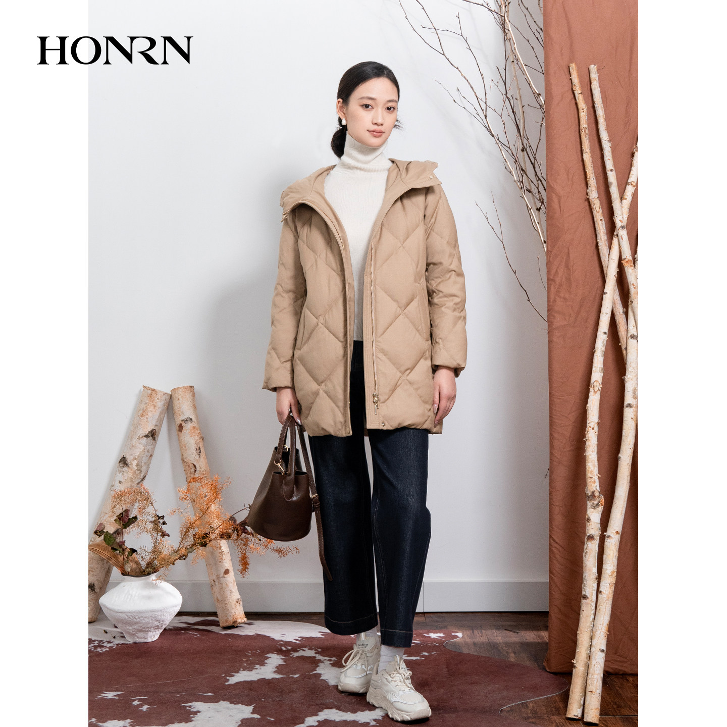 📚 HONRN/红人连帽双头拉链羊毛白鹅绒羽绒服外套女款冬季HI55YR464