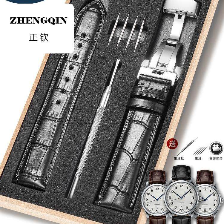 📚 适配浪琴表带真皮男名匠L2瑰丽L4嘉岚典藏月相女蝴蝶扣针扣手表带