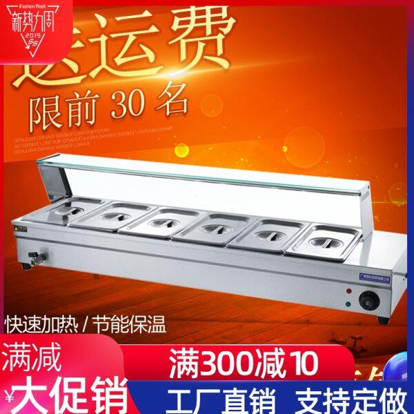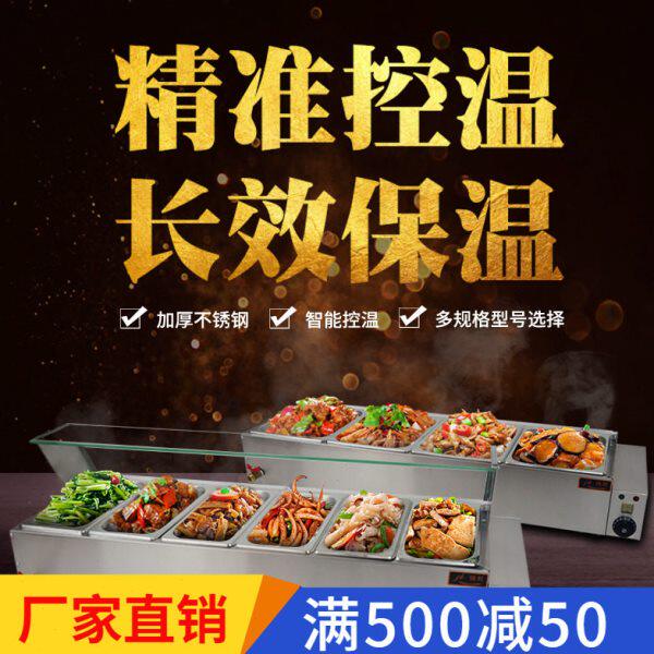 📚 不锈钢保温售饭台商用4/6/8格食堂加热快餐保温台玻璃罩保温汤池