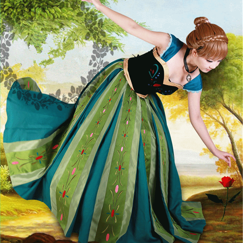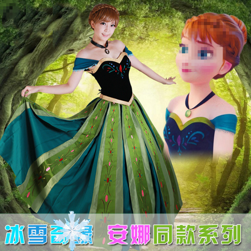 📚 成人女冰雪公主安娜加冕公主裙刺绣礼服cosplqy服万圣节服装圣诞