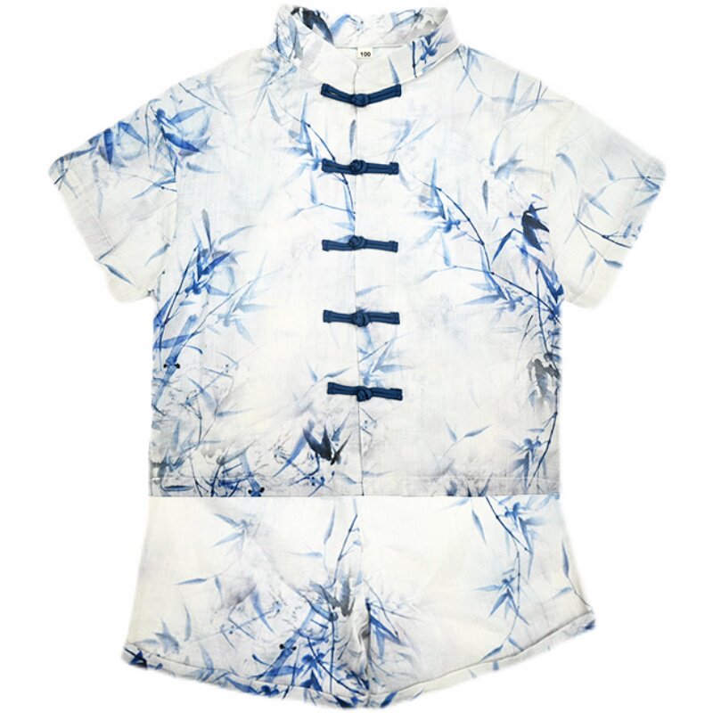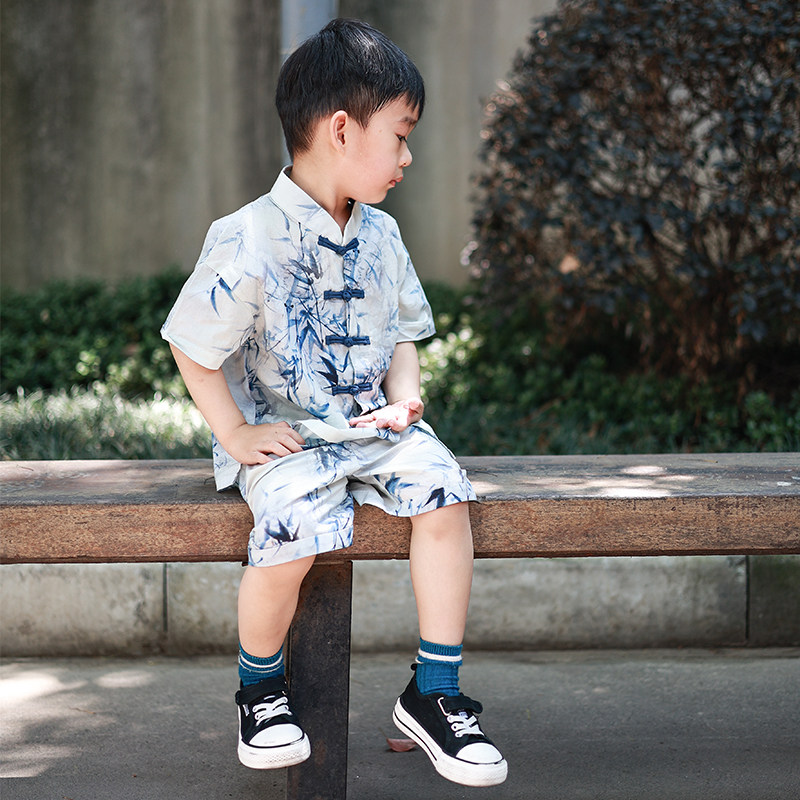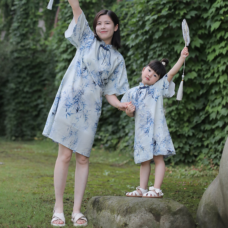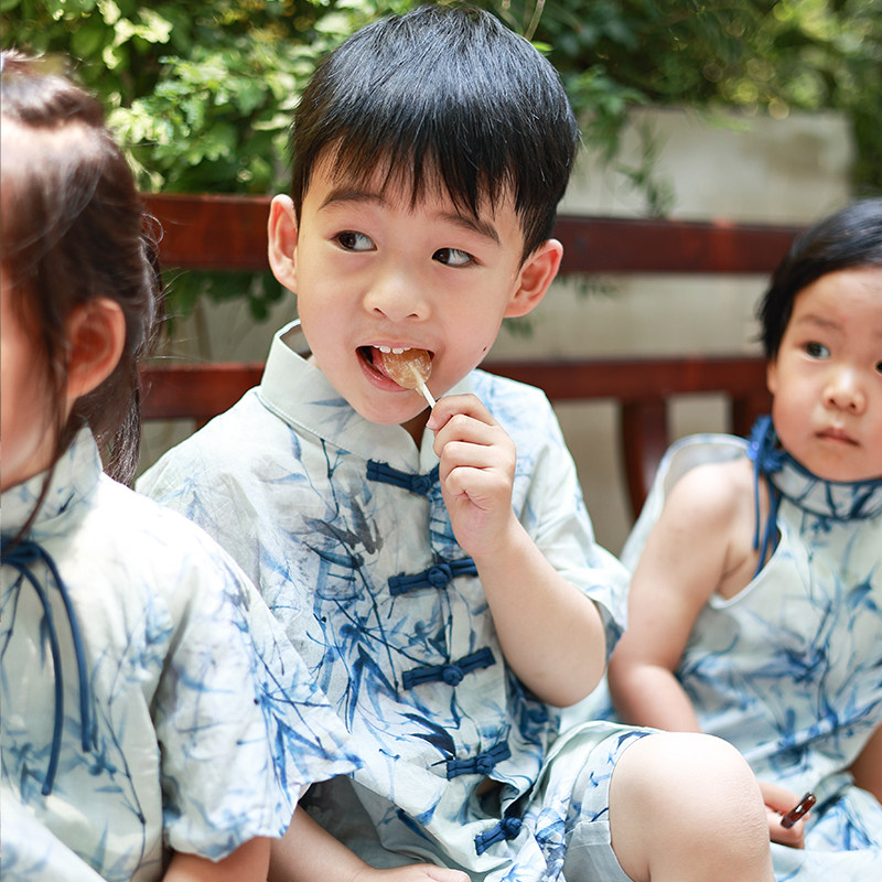 📚 夏-水墨竹亲子新中式男童唐装女童旗袍裙姐弟装中国风汉服