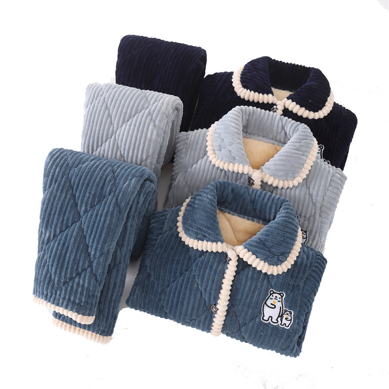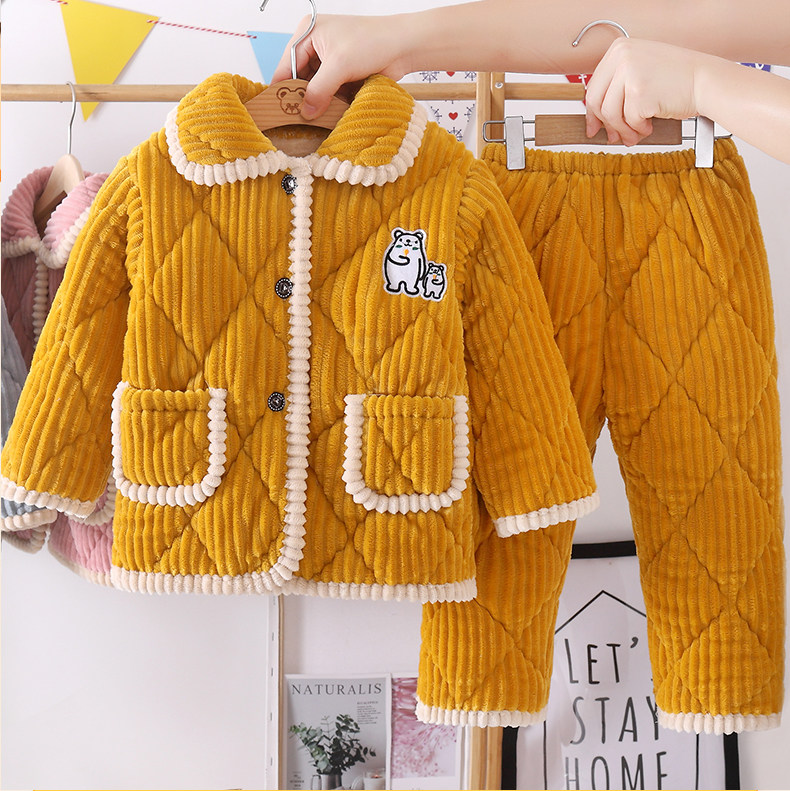 📚 儿童法兰绒睡衣冬季女童男童珊瑚绒加厚款宝宝套装秋天夹棉家居服