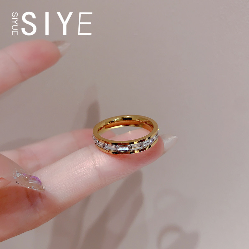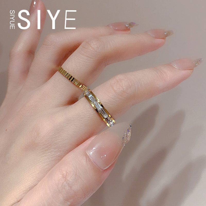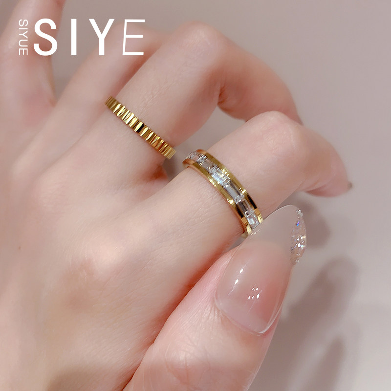 📚 SIYUE/定制 不掉色钛钢镀18k金素圈条纹锆石戒指女个性时尚指环女