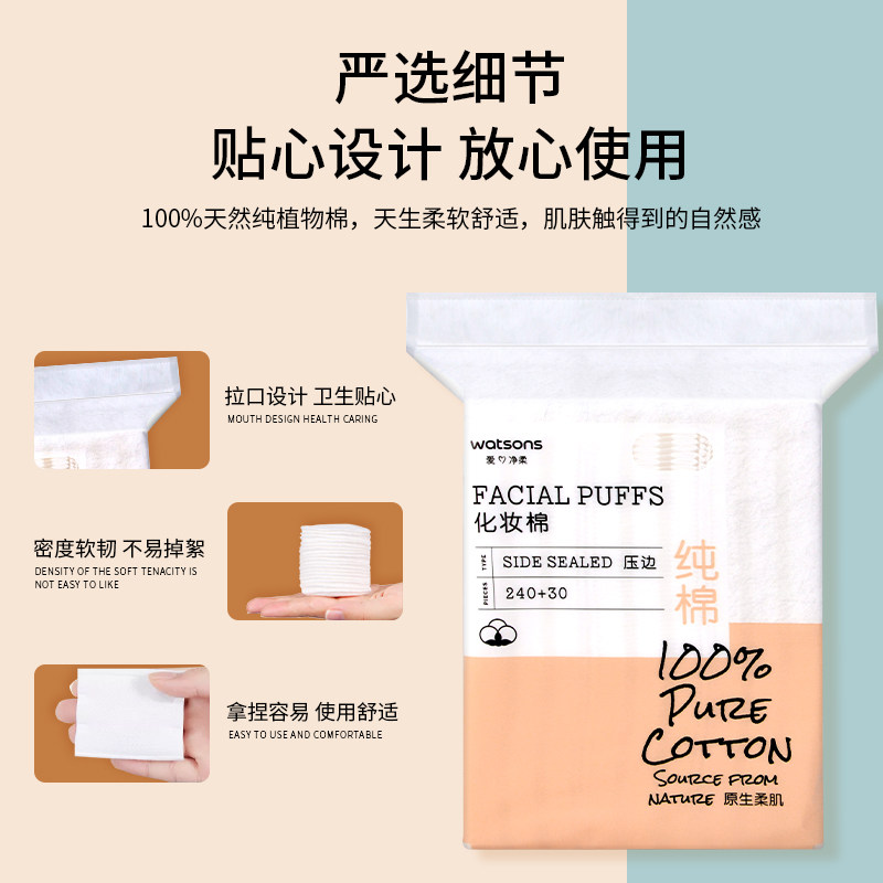 📚 屈臣氏压边纸纤维化妆棉200片卸妆棉加厚脸部纯棉正品深层清洁薄