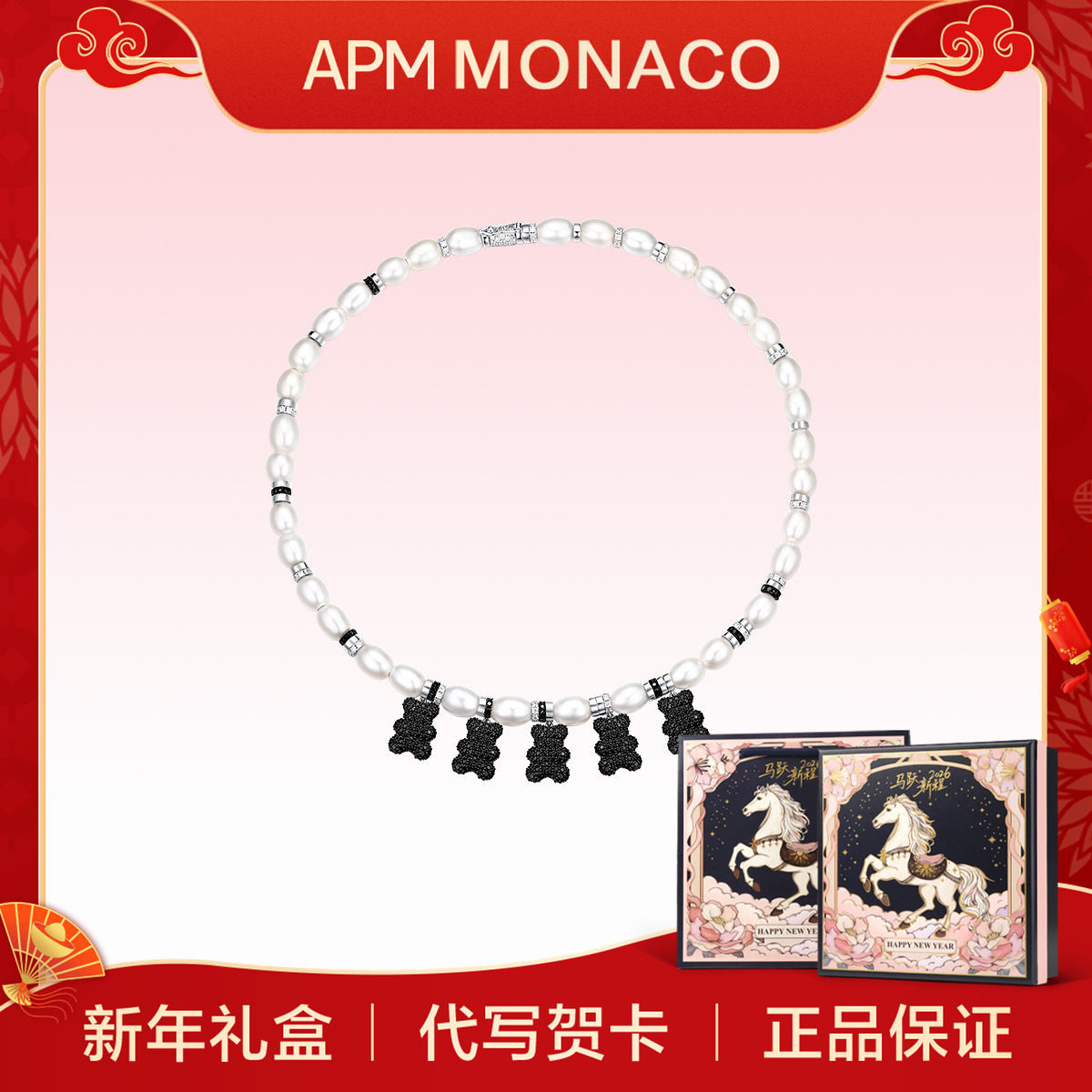 📚 【新年礼物】APM Monaco40周年限量版小熊珍珠项链女款时尚饰品
