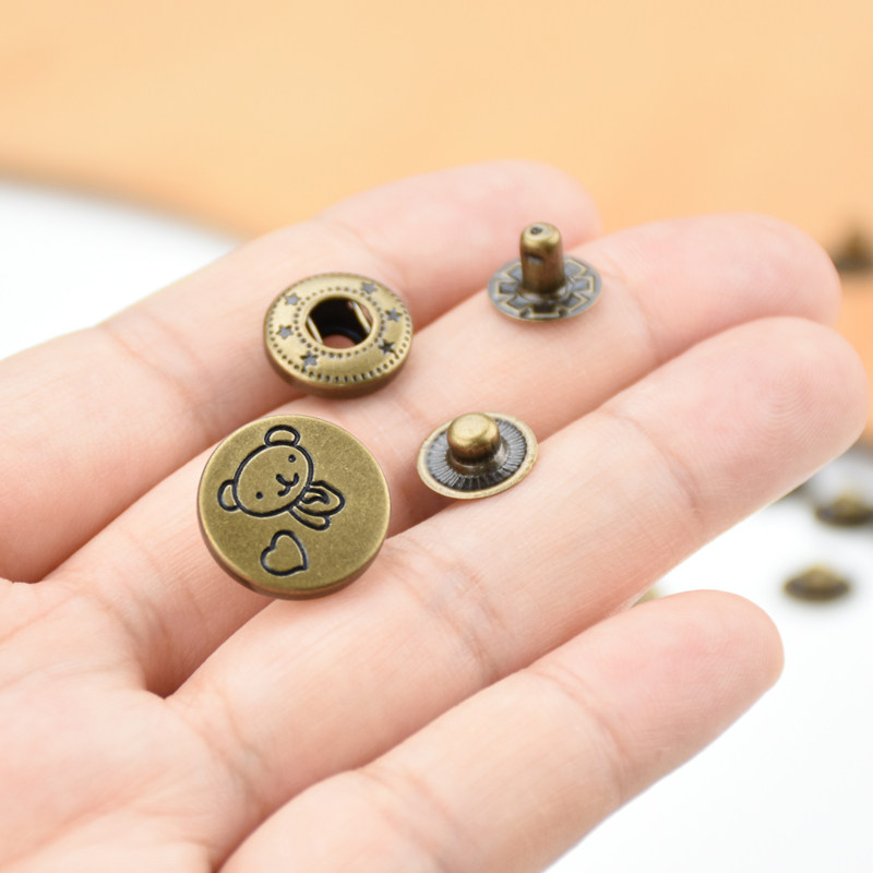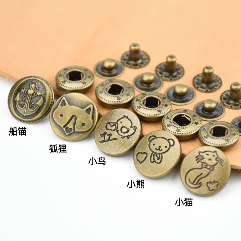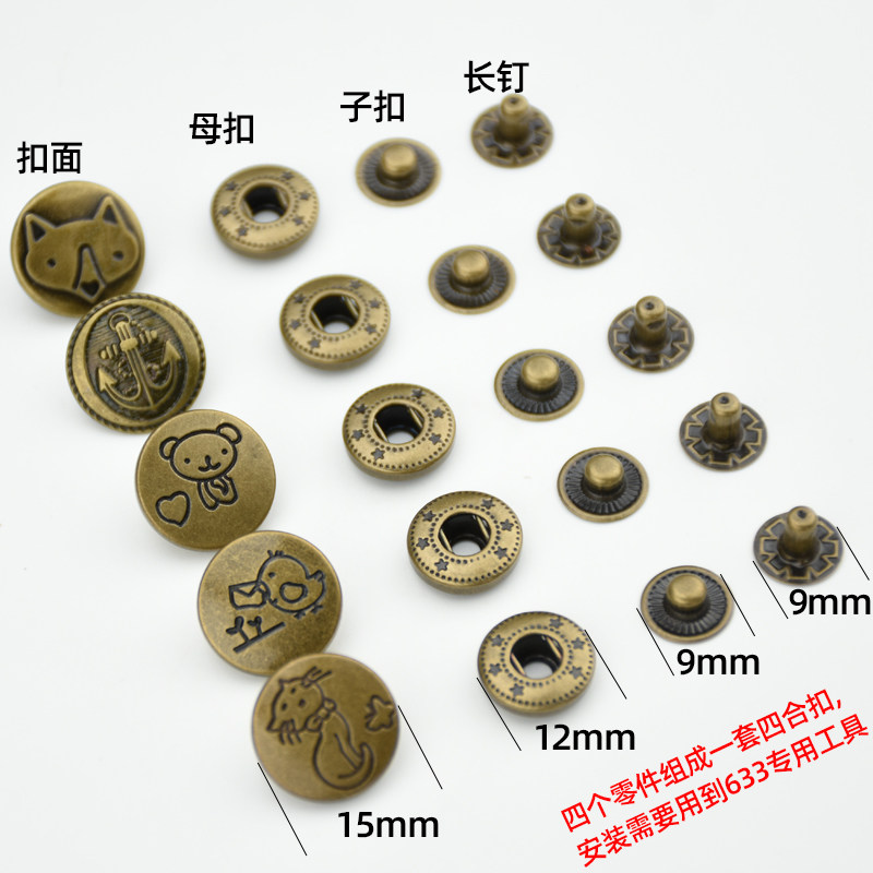 📚 复古四合扣20套+工具暗扣633纽扣金属古铜色小猫鸟熊船锚扣面15mm