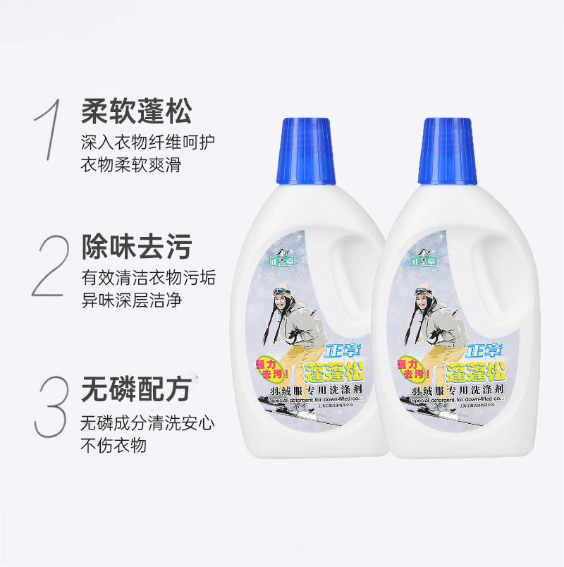 📚 正章蓬蓬松羽绒服专用洗涤剂500ml*2瓶无磷羽绒服洗衣液大瓶居家