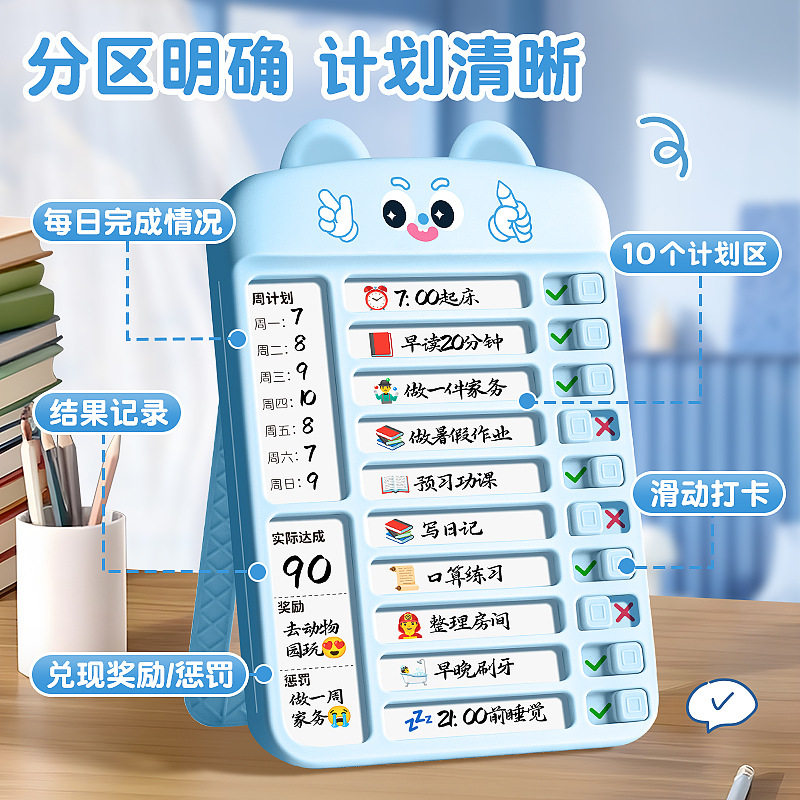 📚 咔巴熊自律打卡器打卡记录表小学生每日学习计划表自律管理神器本