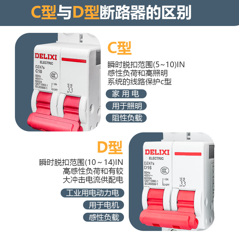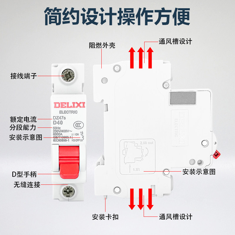 📚 德力西空气开关DZ47S电闸小型保护断路器D型1P2P3P16A20A32A63A